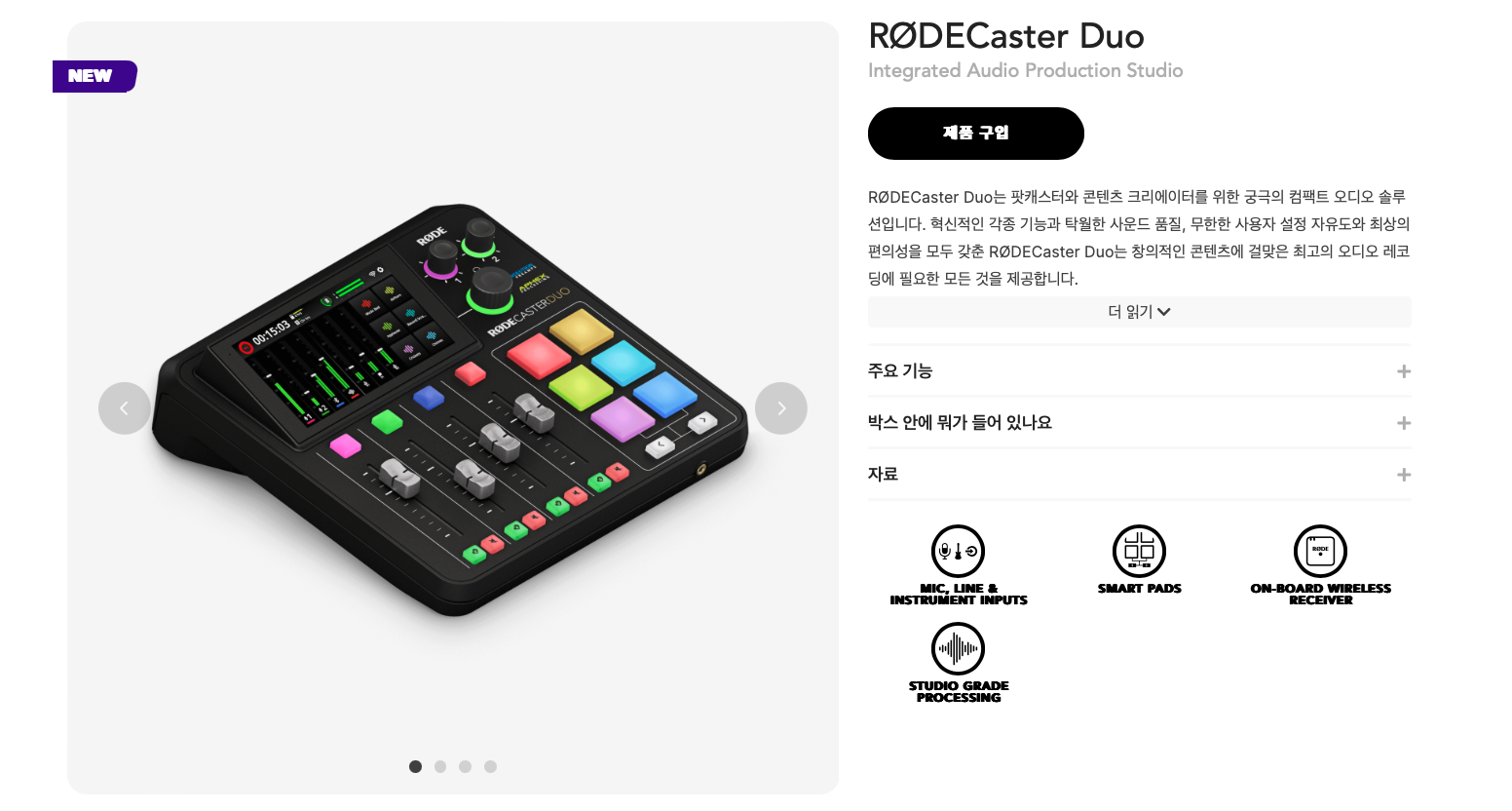 RøDECaster Duo는 Rode에서 개인 방송 및 팟캐스트 시장을 노려 출시한 디지털 믹서 시리즈 중 가장 최신 버전이다. 4년 전 1세대인 RøDECaster Pro가 시장에서 흥행한 이후 출시된 후속작이다. RøDECaster Duo의 컨셉은 이전 RøDECaster 시리즈와 동일하게 "개인 방송을 진행하는 사람을 위한 올인원 장비"라는 컨셉을 가지고 있지만 약간의 다이어트가 들어갔다. RøDECaster Pro 2와 비교했을 때, 가장 큰 차이점은 인풋 개수와 페이더 개수, 그리고 스마트 패드 개수가 줄어들어서 굉장히 컴팩트하게 들고 다닐 수 있다는 점이다. 이전의 RøDECaster Pro 2가 작은 책상 위를 꽉 차지했다면, RøDECaster Duo은 작은 책상에서도 부담되지 않는 사이즈로 출시되었다. Pro 2 모델이 중대형 팟캐스트를 커버할 수 있는 정도였다면 Duo는 개인 방송 및 초대석 같은 소규모 모임애 굉장히 특화된 장비라 말할 수 있다. RøDECaster Duo 가격은 799,000원이다. 사이즈와 인풋 채널을 줄여서 가격 다이어트에도 성공했다. 요즘 방송에서 자주 사용하는 오디오 인터페이스의 가격이 140만 원 근처에 육박하는 걸 생각하면 이 정도면 꽤 저렴한 축이라 필자는 생각한다. 일반적인 오디오 인터페이스처럼 사용할 수도 있지만 RøDECaster Duo는 단독으로 사용할 수 있는 디지털 믹서다. 그렇기에 차별점이 있다.