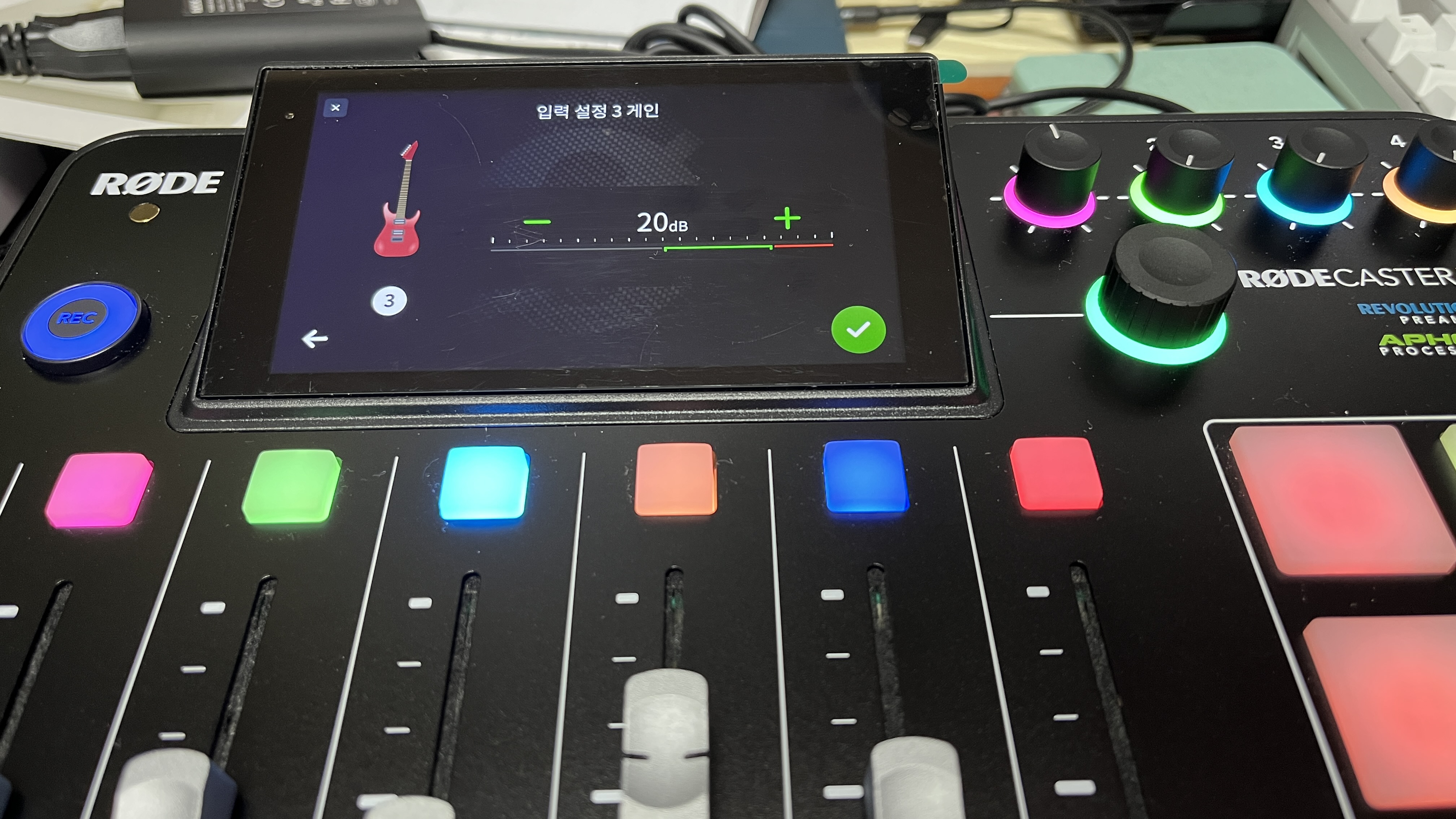 입력 채널을 라인 입력으로 설정했을 경우도 프리셋 없이 입력 게인 조절로 넘어간다. 기본적으로 0dB로 맞춰져 있으나, 기본적으로 들어오는 소리가 작은 경우엔 게인을 높여주면 된다.