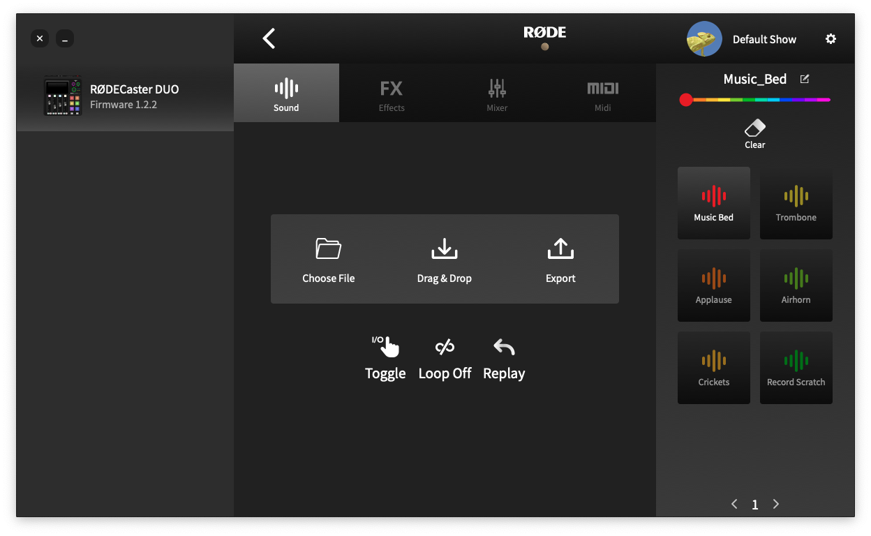 샘플을 스마트 패드에 넣는 방법은 간단하다. 매핑하고 싶은 스마트 패드 슬롯을 선택한 후, Choose File을 눌러 파일을 고르거나, 드래그 드롭으로 파일을 던져 넣으면 선택한 슬롯에 샘플이 들어간다. 다만 전작과 마찬가지로 RøDECaster Duo 내부 설정에서 지원하던 시작점 및 끝점을 설정하는 건 지원하지 않는다. 추후 RøDE Central 업데이트로 샘플 길이 편집도 지원해 줬으면 좋겠다.