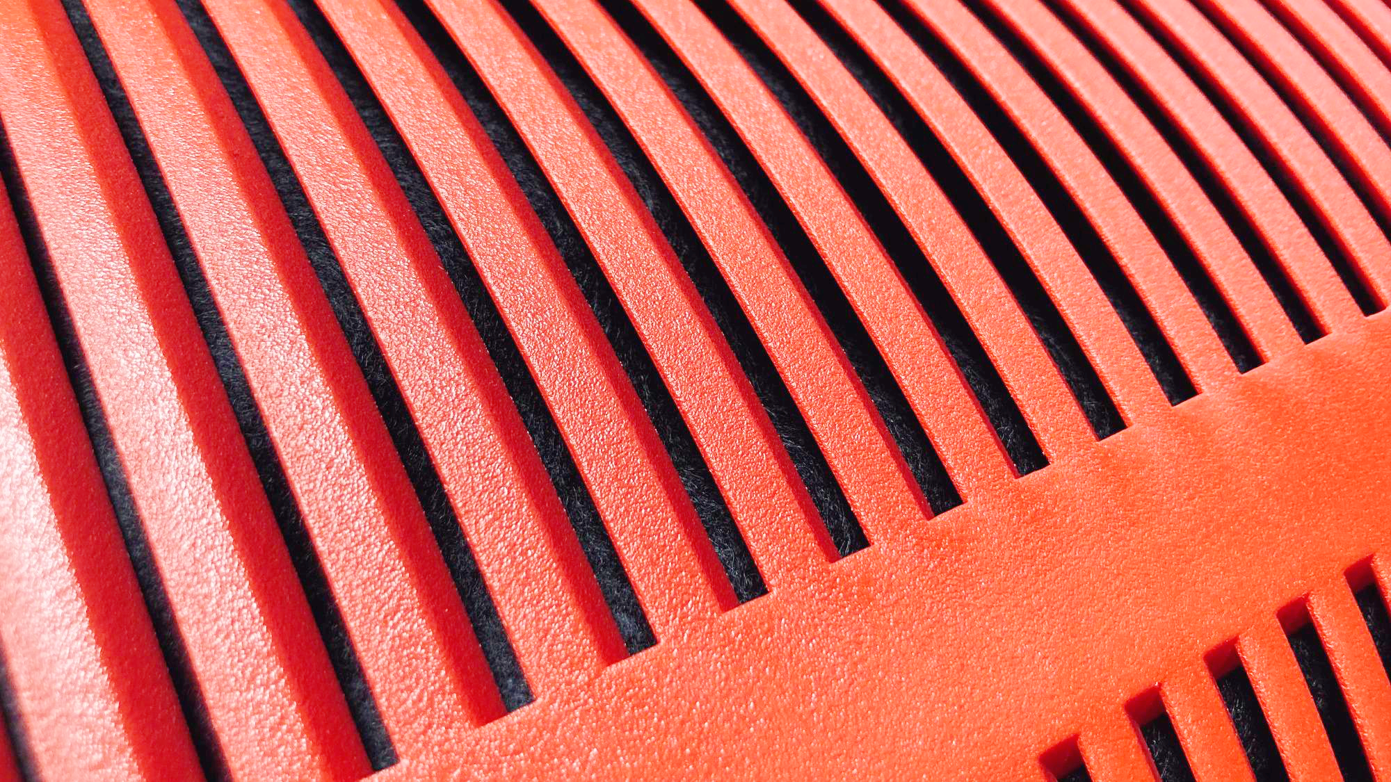 RF-X의 내부는 그냥 평범한 스펀지로 마감되어 있다. 저렴한 녹음실 하면 생각나는 그런 스펀지다. 리플렉션 필터라는 이름답게 소리의 분산에 초점을 맞춰 일정 간격으로 스펀지가 굴곡져 있다. 마감 자체는 깔끔한 편이다. 적당히 볼륨감 있으면서도 복구력도 좋다. 조금 더 복잡한 패턴이었다면 좋지 않았을까 하는 생각은 있다. 지금 패턴 역시 보여주려는 느낌이 없지 않아 있는데 이 요소를 좀 더 극대화했다면 어땠을까.