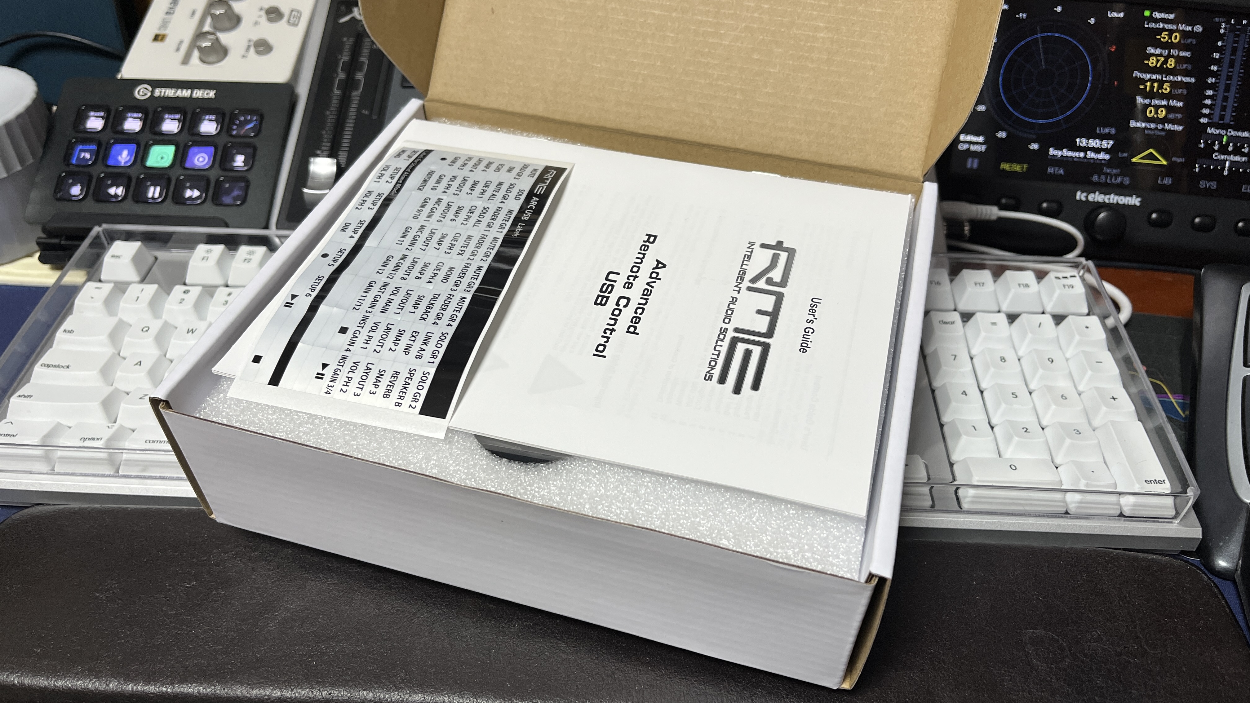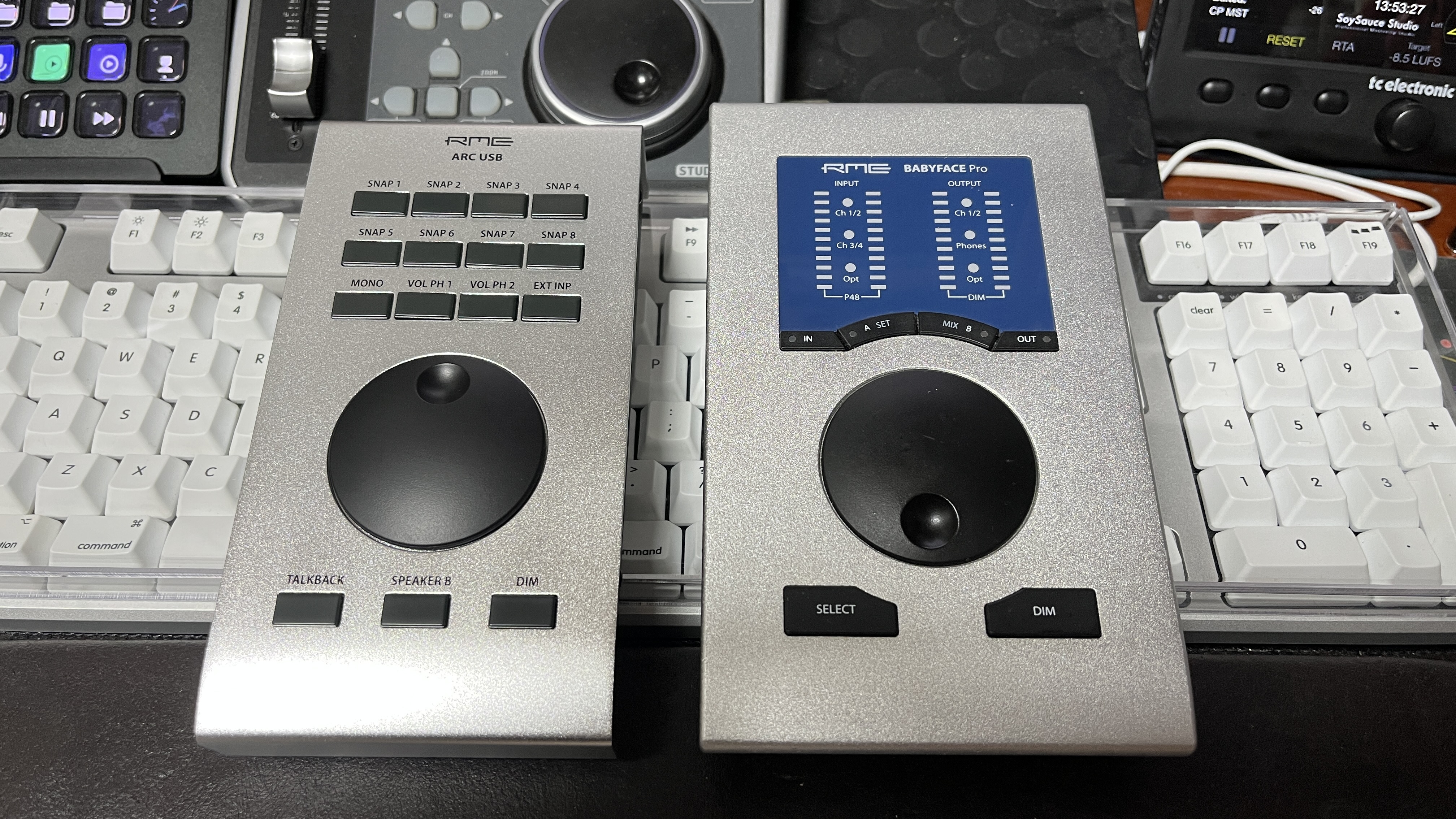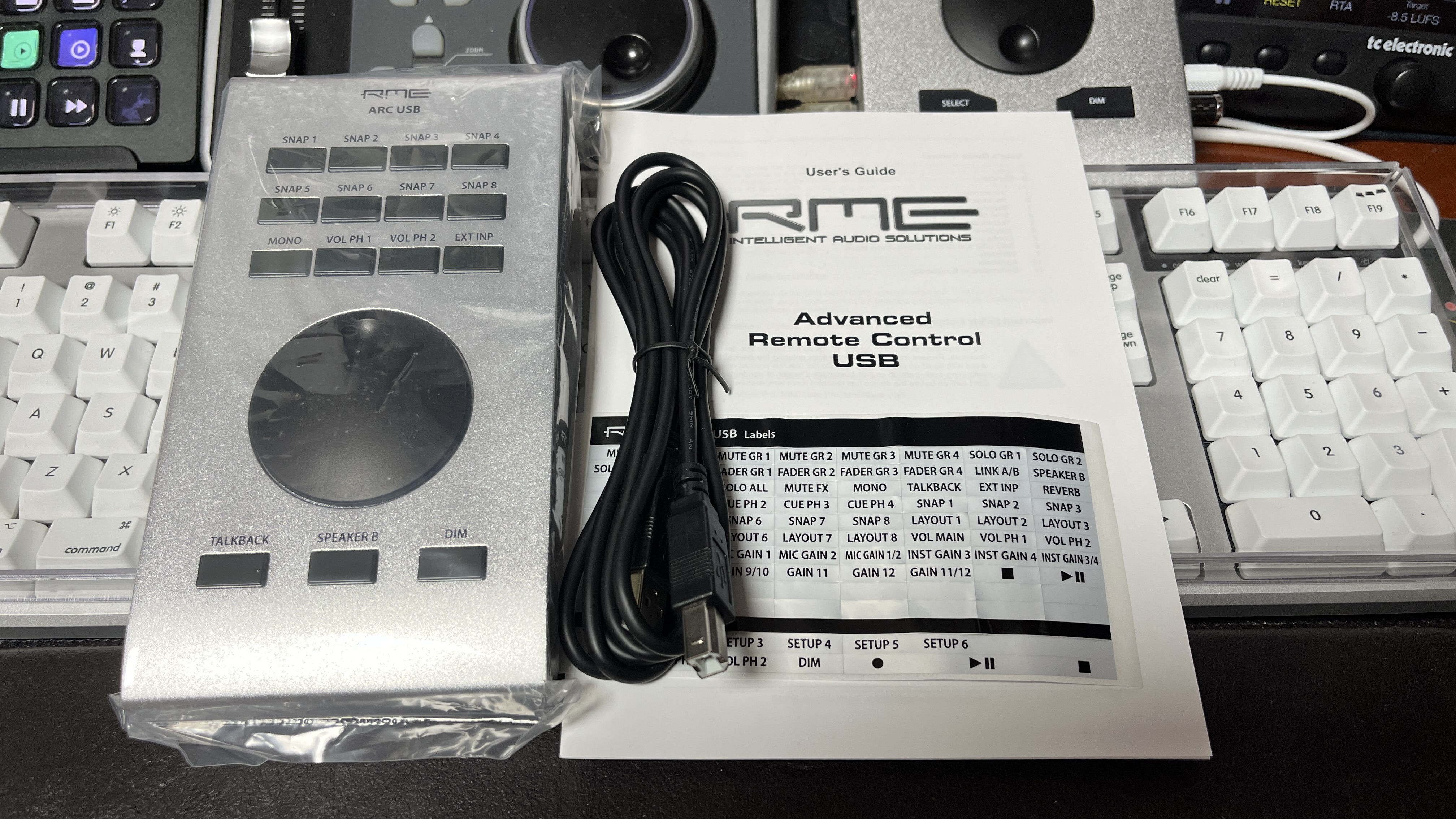 필자의 지인들은 모두 다 알고 있는 사실이지만, 필자는 심각한 RME 매니아다. 그래서 매인 오디오 인터페이스 및 AD/DA 컨버터를 모두 RME의 제품으로 사용하고 있다. 문득 계산해 보니 필자가 RME라는 브랜드를 알게 되고, 사용한 지 년수만 7년 가까이 된 거 같다. Babyface Pro가 출시되었을 때, 얼마 되어서 가져왔으니 꽤 오래 썼다고 말할 수 있다. Babyface Pro를 지금까지 사용하면서 매우 편했던 점들도 있지만 물리적 한계로 인해 여러 가지 우여곡절들이 있었다. Toslink 연결 포트가 부족해서 S/PDIF 분배기로 나눠 사용하 그런데, 앞으로의 장비 확장 계획을 고려하면 결국 Babyface Pro는 역부족이라는 생각이 들기 시작했다. 이젠 새로운 장비로 업그레이드할 때가 다가왔다. 이미 RME의 참맛을 알아버린 이상, 다음 메인 장비도 RME로 갈 생각이다. 현재 필자가 보고 있는 장비는 최근 RME에서 출시한 Fireface UCX2다. 그런데 Fireface 모델로 넘어가게 되면 Babyface Pro에서 잘 쓰던 조그 휠이나 기타 버튼들을 쓰지 못하고 일일이 작은 화면을 들여다봐야 한다는 단점이 생겼다. 결국 그걸 한번 써보기로 결단을 내렸다. 그게 무엇이냐면, RME에서 출시한 미디 컨트롤러, ARC USB다.