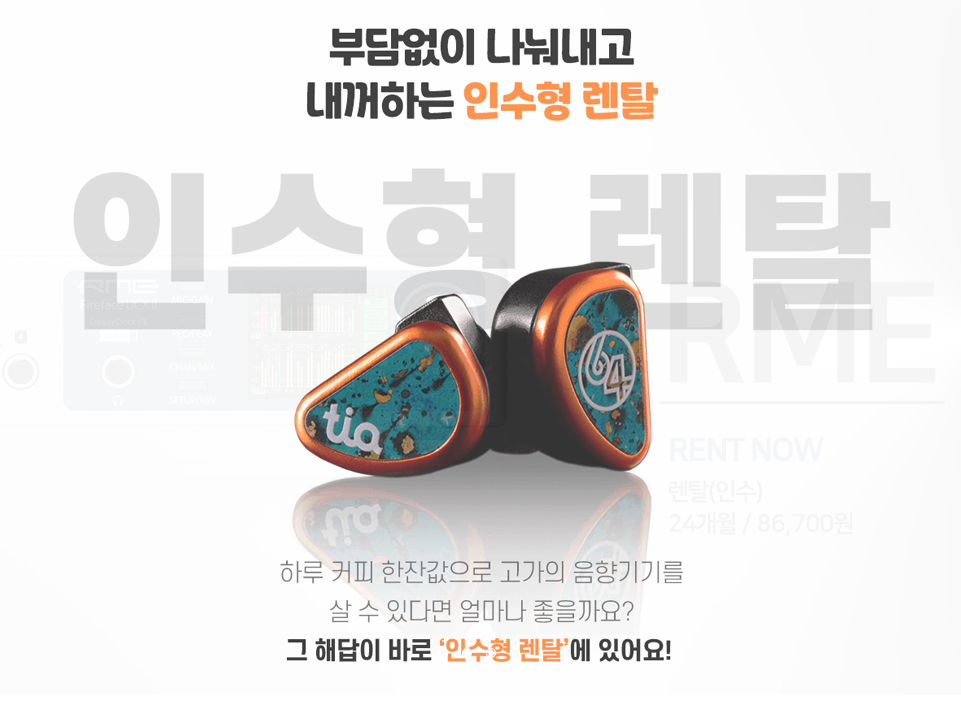 다른 리뷰에서도 간단하게 설명한 바 있지만, 캣츠렌탈은 사운드캣이 취급하는 있는 모든 장비들을 빌릴 수 있다. 최근 유튜브로 이름을 알린 Hi-Fi 오디오 제품부터, 음악인들을 위한 오디오 인터페이스 및 마이크까지. 재고만 있다면 다 빌릴 수 있다. 캣츠렌탈은 인수형 렌탈과 써보기 렌탈, 총 2가지의 서비스를 지원한다. 인수형 렌탈과 써보기 렌탈은 기본적으로 장비를 빌려준다는 점은 동일하지만 결제 방식이나 처리 과정에서 약간 다른 점이 있다.