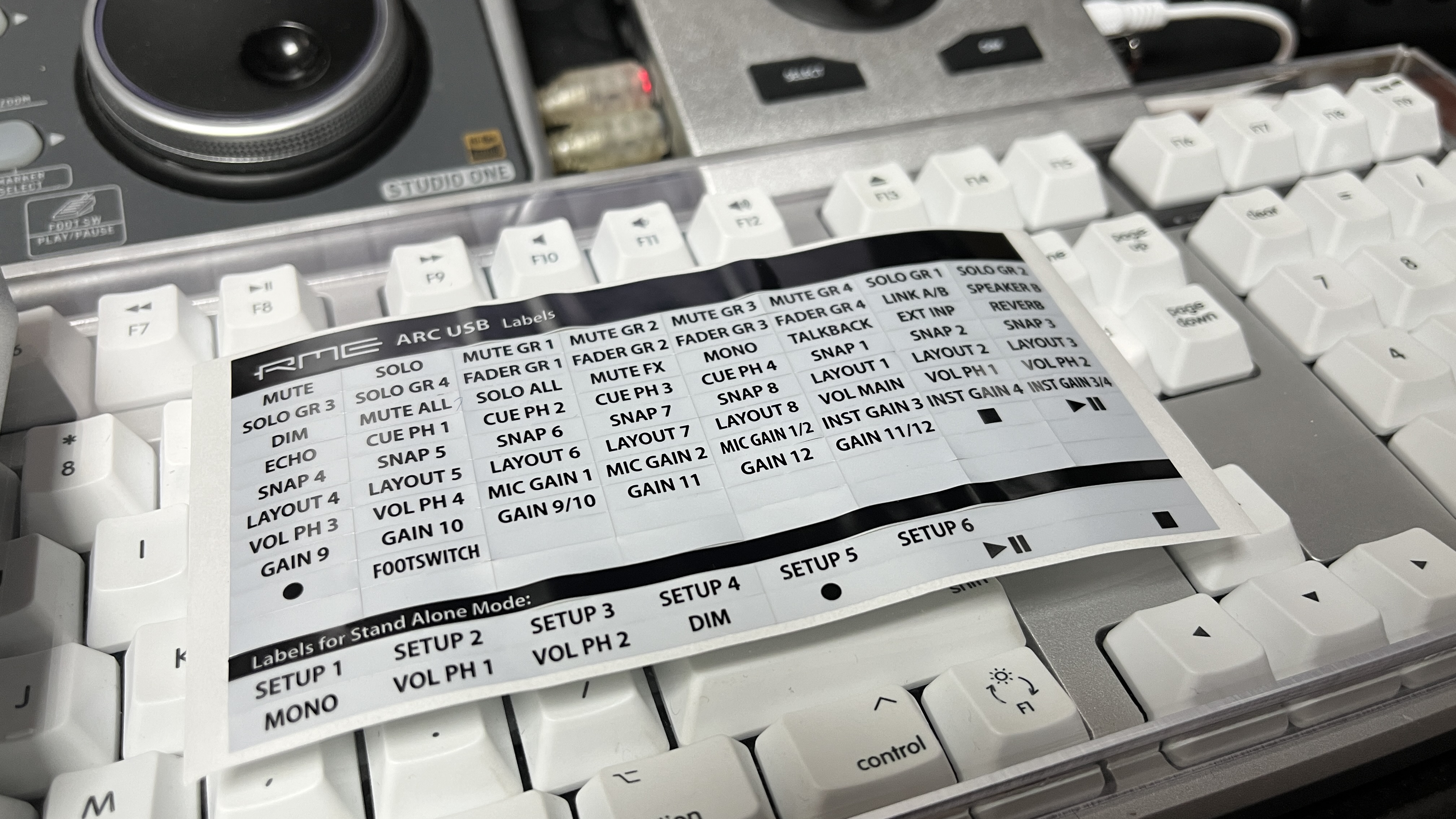 ARC USB를 더욱 잘 활용하려면 TotalMix FX와의 매핑은 필수불가결하다. 애초에 TotalMix FX를 더욱 잘 제어하기 위해 만들어진 장비가 ARC USB다. ARC USB는 TotalMix FX에서 제공하는 모든 기능들을 매핑해서 사용할 수 있다. TotalMix FX 버전에 따라 사용할 수 있는 기능들이 다르기에 되도록 최신 업데이트를 한 후 매핑하는 걸 권장한다. 처음 개봉할 때 라벨 스티커를 기억하는가, 그걸 왜 넣어줬겠는가. TotalMix FX에 매핑을 한 후, 라벨 스티커를 ARC USB의 버튼 위에 붙여 쓰라는 뜻이다. 다만 TotalMix FX에 매핑하려면 컴퓨터에 먼저 TotalMix FX를 지원하는 오디오 인터페이스가 연결되어 있어야 한다. 그러지 않으면 TotalMix FX 자체가 열리지 않는다.