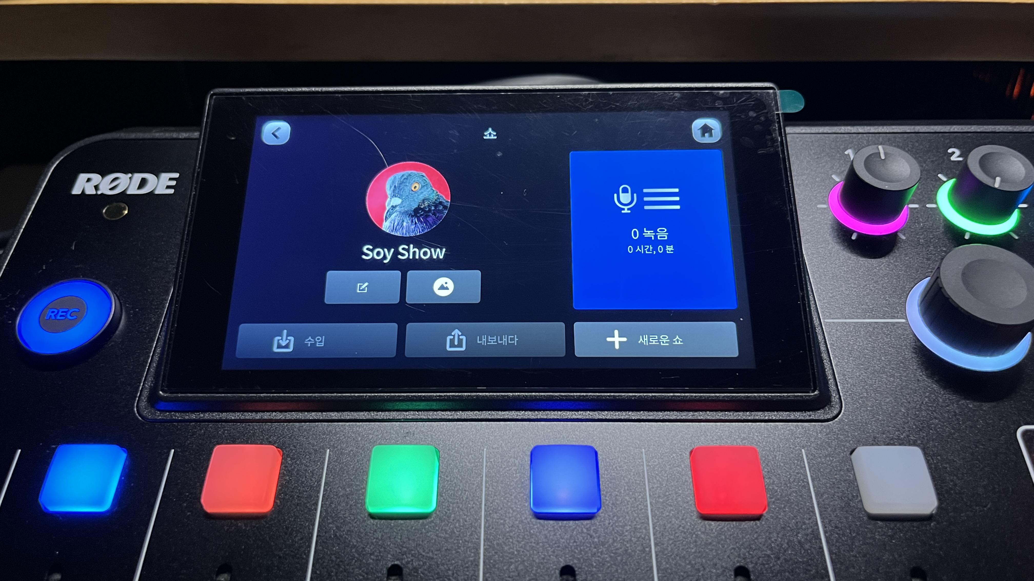 처음 RøDECaster Pro II을 켰을 때 열심히 설정했던 쇼 모드다. 현재의 쇼에서 레코딩을 몇 시간 했는지 플레이리스트 형식으로 확인할 수 있다. 새로운 쇼 제작 역시 여기서 할 수 있다. 메인 화면의 좌측 상단의 아이콘을 눌러도 여기로 들어올 수 있다.