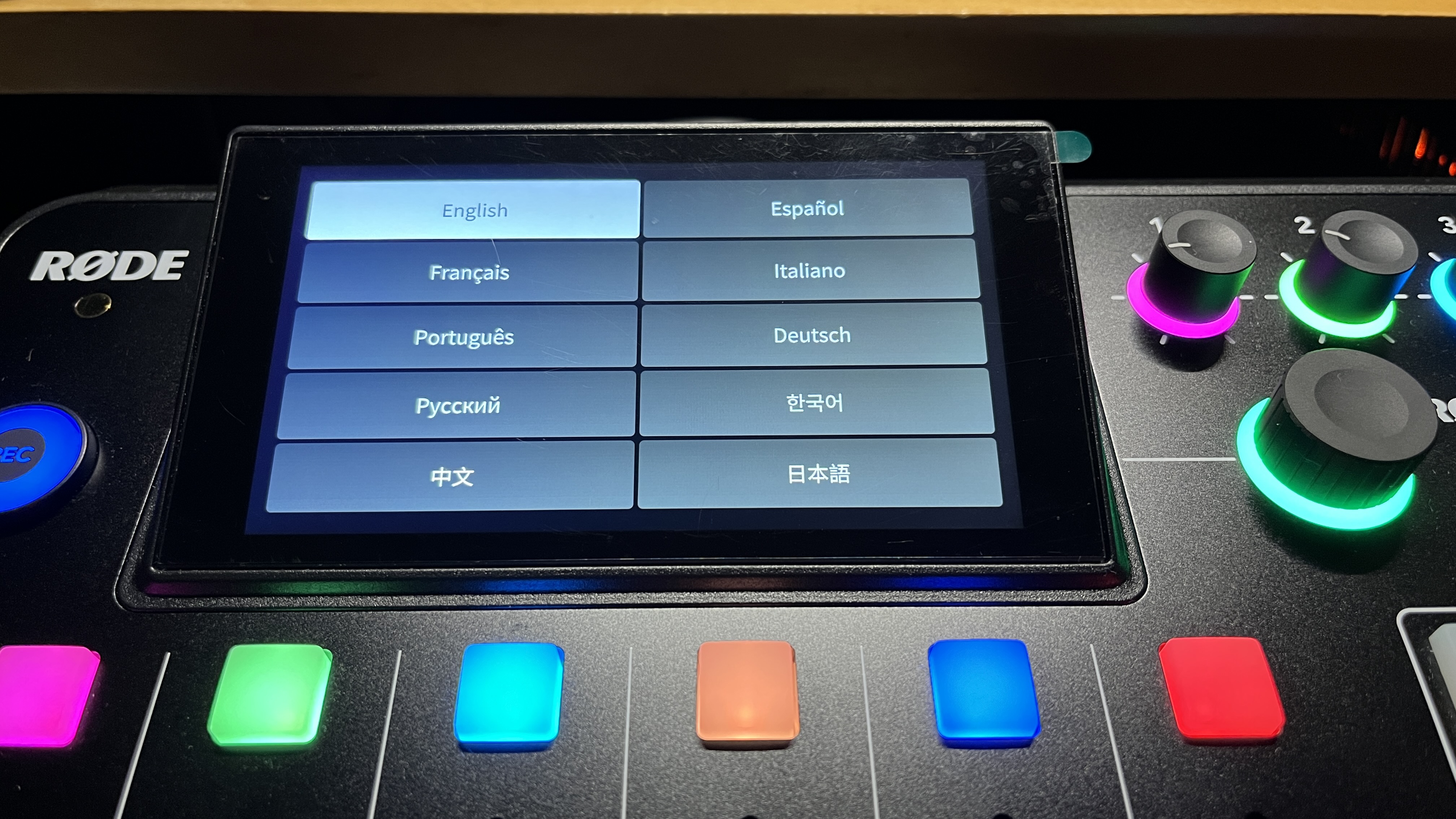 천릿길로 한 걸음부터라고, 설정의 시작은 언어 설정부터다. RøDECaster Pro II는 총 10개의 언어를 지원하는데, 한국어를 지원하는 게 눈에 띈다. 여기서 필자는 한국어로 설정 후 다음 과정을 진행하였다. 한국어로 설정했을 때 용어들이 어떻게 번역되었을지 궁금했기 때문이다. 다만 필자의 개인적인 의견이지만 어느 정도 음향 관련 지식이 있는 사람이라면 "영어"로 언어 설정을 하는 걸 권한다. 인터넷에 훨씬 많은 정보도 있을뿐더러, 문제 발생 시 더욱 빠르게 해결되는 등 은근히 도움이 된다. 포토샵이 한국어를 지원하는데 대다수의 강의들이 영어 기반으로 진행되는 것과 같은 사례라고 이해하면 좋을 듯하다.