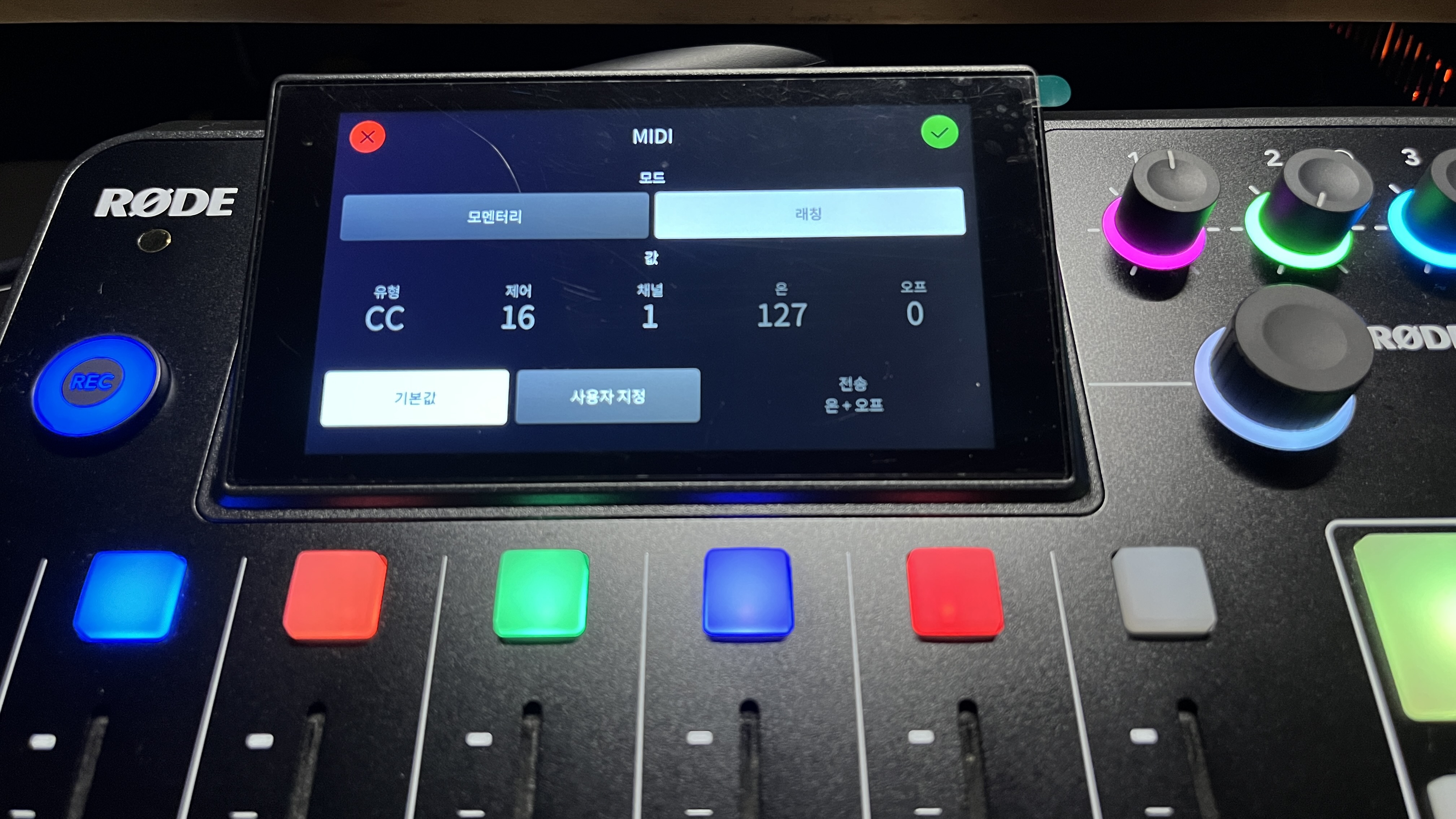 MIDI 항목에서는 RøDECaster Pro II를 MIDI 컨트롤러로 사용할 것인지를 체크하는 옵션이 있다. 이 옵션을 켜게 된다면, RøDECaster Pro II를 DAW에 물려 MIDI 컨트롤러로 사용할 수 있다. 그러나 필자는 별로 추천하진 않는데, 이유는 모터 페이더다. 페이더가 있다는 점에서 여타 컨트롤러보다 설정할 요소들이 많지만 모터 페이더가 없기에 믹싱할 때 DAW의 페이더값을 가져오는 게 아닌, 덮어씌우는 형태로 작동한다. 사용은 할 수 있지만, 사람에 따라서 불편함을 느낄 수 있는 요소들이 많으므로 필자는 불호 쪽이다.