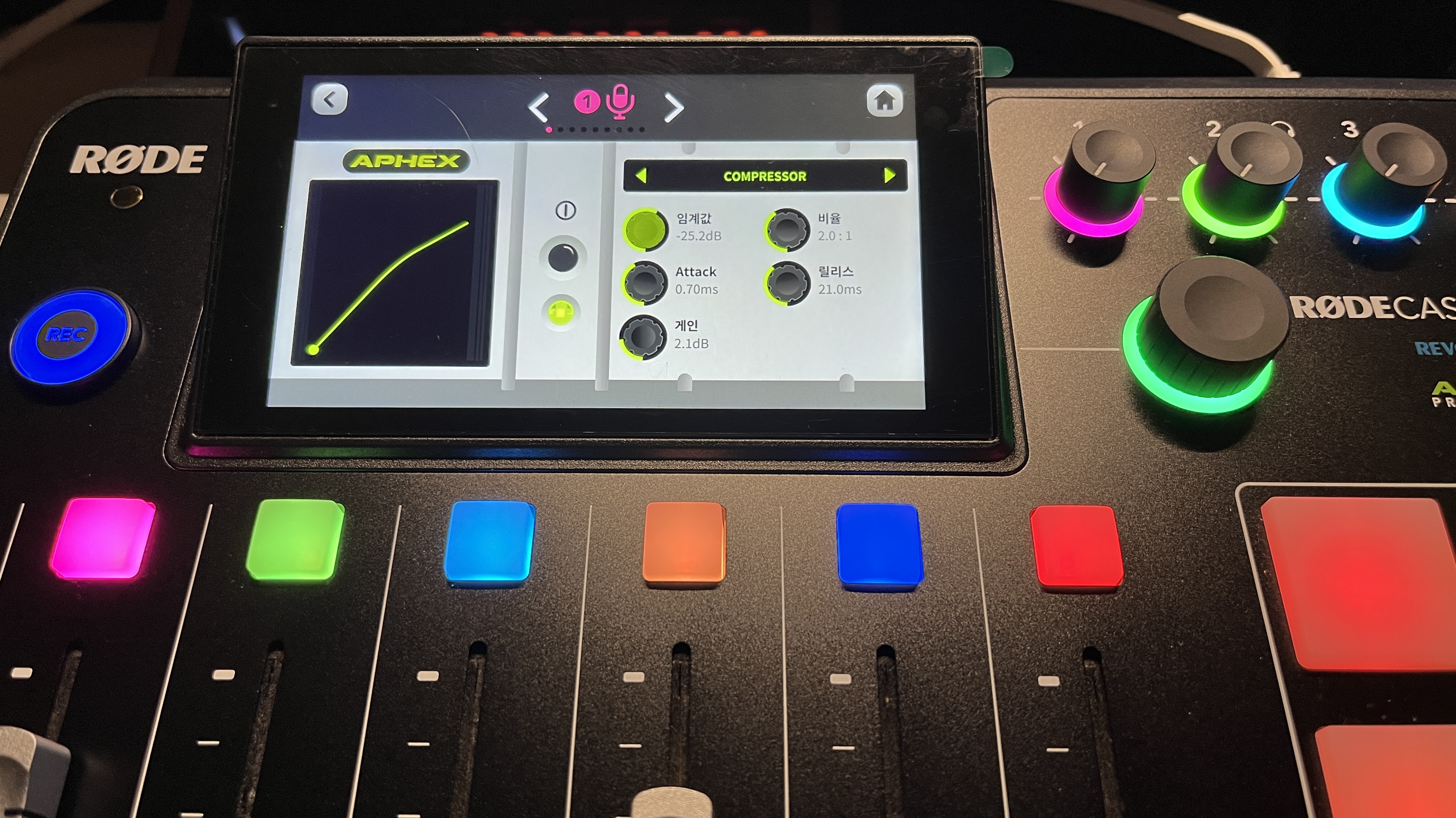 다만 RøDECaster Pro II에도 단점은 있는데, 첫 번째로 한글 번역이다. 장비들의 언어를 한국어로 번역한다는 건 쉽지 않은 일이다. 특히 음악 장비처럼 전문화된 장비의 경우, 관련 용어들이 영어에 기원을 두고 있기에 교육 현장에서도, 현업에서도 주로 영어 용어들로 소통하는 편이다. 그렇기에 전문 용어들을 최대한 살리면서 번역을 해야 하는데, RøDECaster Pro II는 이런 점들이 미흡했다. 위에서 글을 찬찬히 읽어오신 분들이라면 수없이 이상한 번역에 대해 어색함을 느끼던 필자를 보았을 거다. 두 번째 단점. 사실 단점이라고 말하기엔 조금 애매한 부분이 있다. 왜냐하면 필자가 느꼈던 단점들이 RøDECaster Pro II의 설계 사상과 직접적으로 연결되어 있기에 섣불리 이야기하기 애매한 부분들이 많다. RøDECaster Pro II는 디지털 믹서의 형태를 가지고 있는데. 다양한 상황에 대응해야 하는 디지털 믹서와 달리 팟캐스트 및 개인 방송에 중점을 맞춰져 있어 기능들이 약간 비직관적이고, 디지털 믹서라면 필수적인 기능들 몇몇이 존재하지 않았다. 이펙터들 역시 팟캐스트 및 개인 방송에 사용할 목적으로 초점이 맞춰져 있기에 일반적인 디지털 믹서에서 보기 힘들 이펙터들이 있다. 그렇기에 디지털 믹서 대용으로 RøDECaster Pro II를 고려하는 분들에겐 좋은 선택은 아니다. 또한 뮤직 프로덕션 환경에서도 RøDECaster Pro II는 좋은 선택은 아니다. 대부분의 작업을 컴퓨터로 처리하는 뮤직 프로덕션 환경에서 MIDI CC 신호를 매핑해 컨트롤러 대용으로 사용할 수는 있지만 단독 사용이 아닌 컴퓨터에 연결해서 사용하기에 RøDECaster Pro II가 가진 장점, 단독 사용이 사라져 버린다. 또한 RøDECaster Pro II의 페이더는 모터 페이더가 아니기에 믹싱 작업에 사용하기엔 약간 불편하다. 차라리 모터 페이더를 지원하는 별도의 페이더 컨트롤러를 구매하는 게 도움이 될 수 있다. 그렇기에 별도의 팟캐스트 스튜디오를 구축하는 게 아니라면 다른 장비를 구입할 것을 권한다.