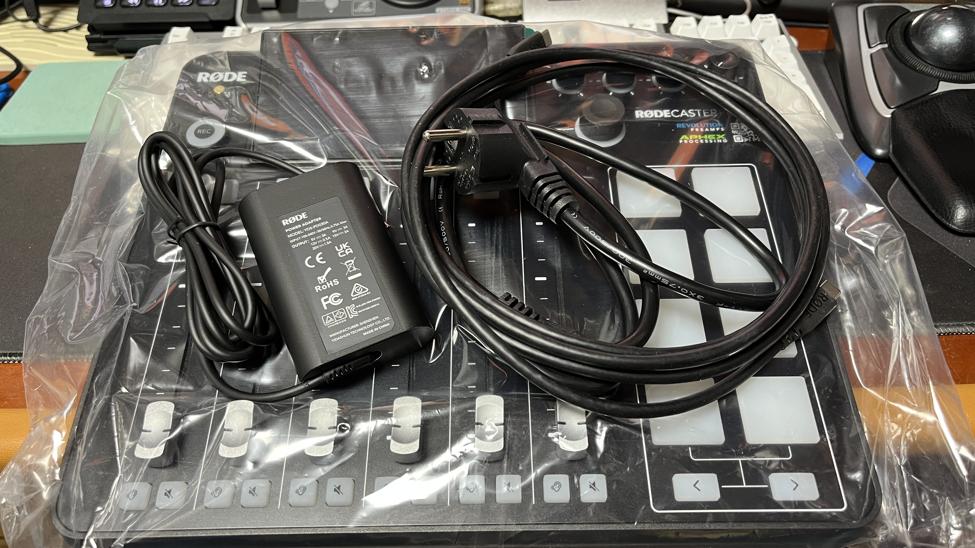 구성품은 박스 사이즈에 비해 굉장히 작다. 심지어 별도의 매뉴얼도 없는 게 조금 도전적이다는 인상이다. 다만 전원 어댑터가 USB-C 타입으로 되어 있어 공식 어댑터가 없더라도 30W를 지원하는 충전기가 있다면 언제든 RøDECaster Pro II를 작동할 수 있다. 또한 디지털 믹서답게 전체적인 케이블들의 길이가 긴 편이다. 케이블 정리는 필수적일 듯하다.
