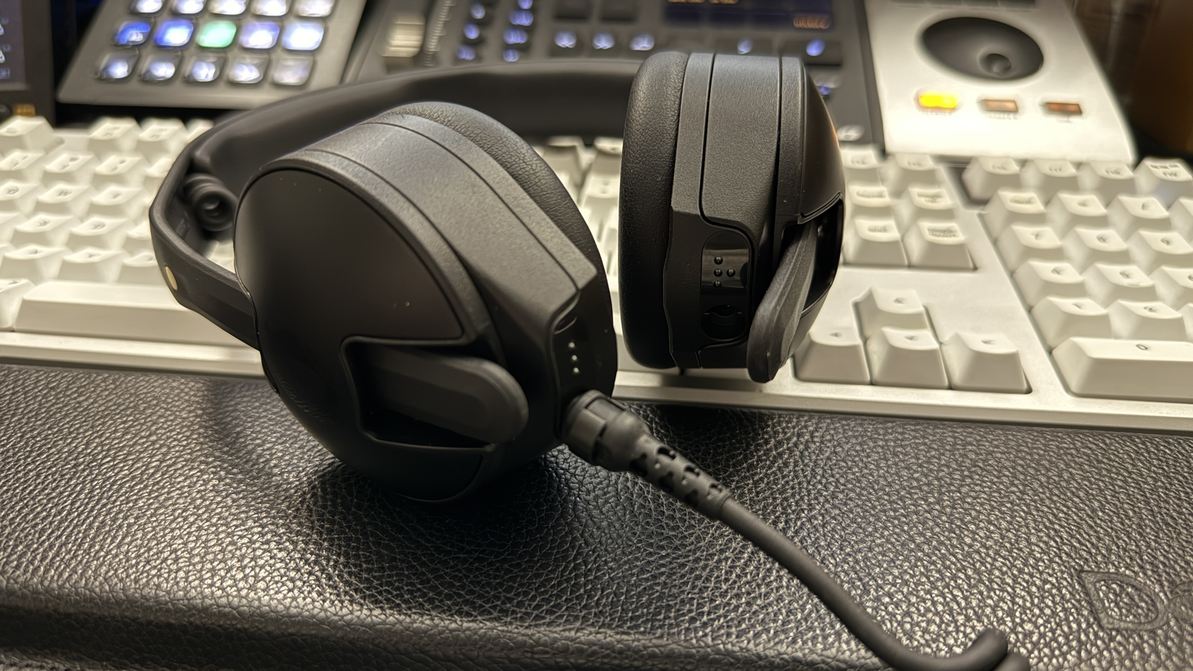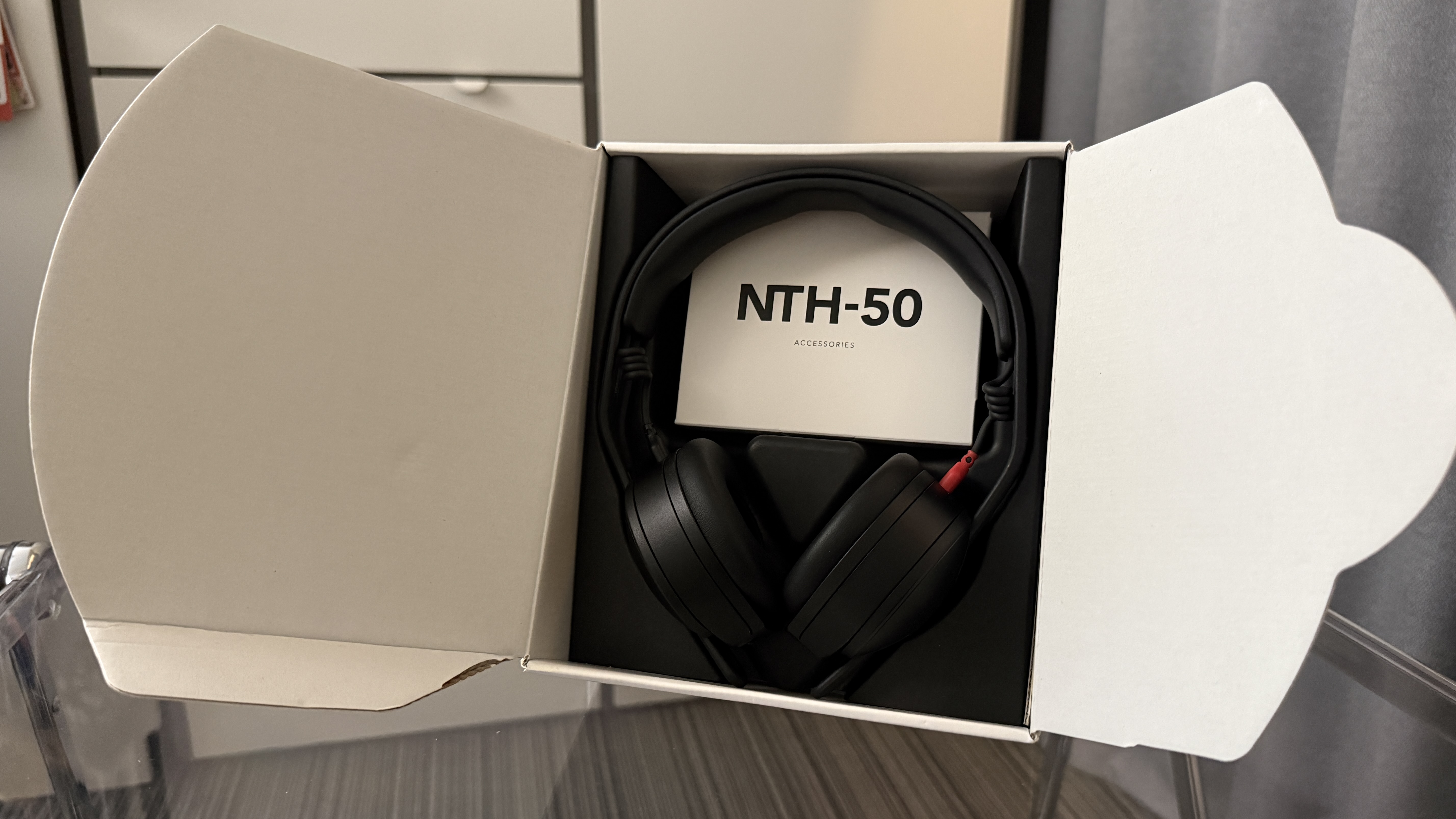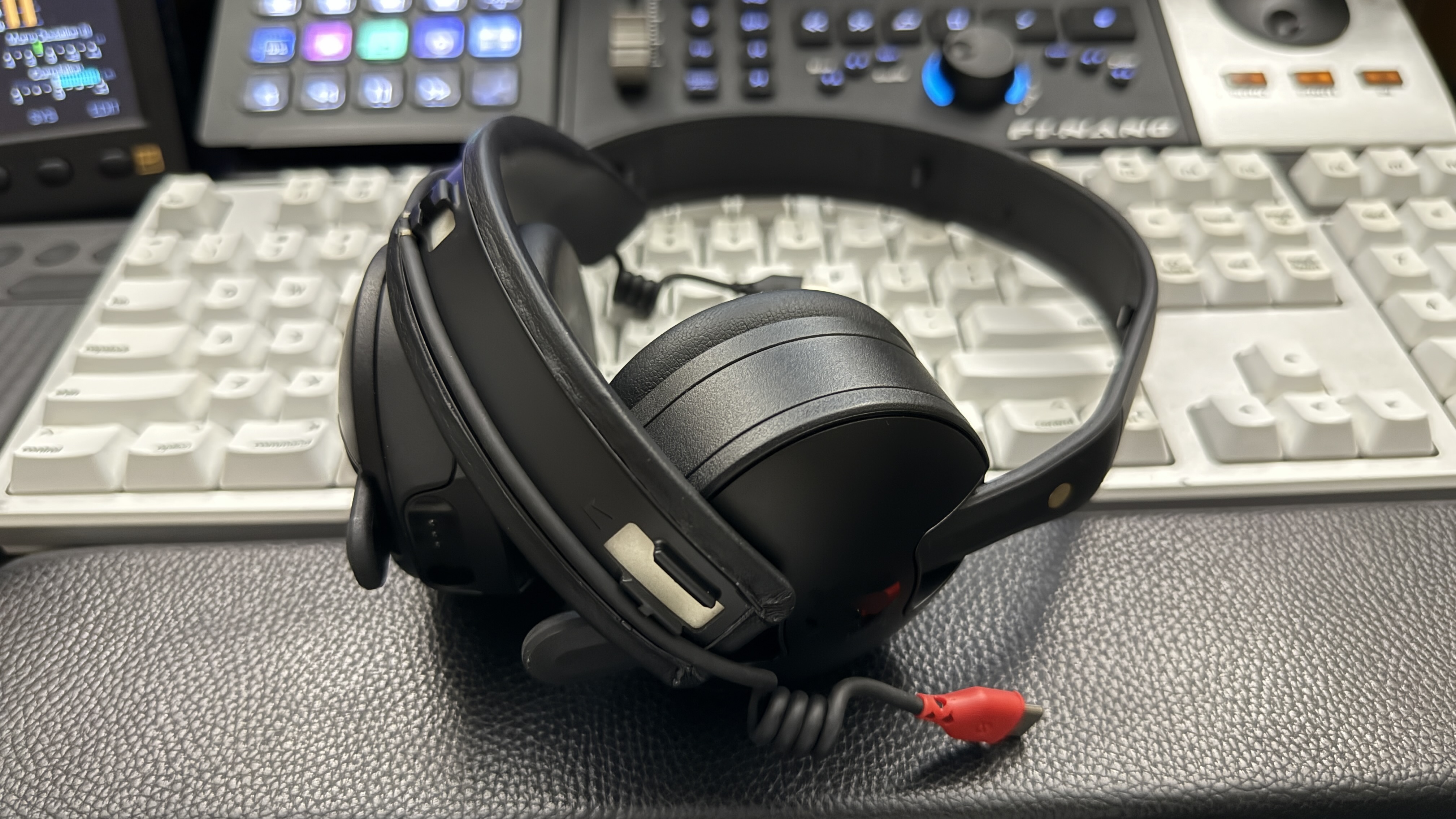 RøDE NTH-50을 책상으로 들고 왔다. DJ 헤드폰이라 했지만 의외로 평범한 외관을 가지고 있다. 보통 DJ 헤드폰이라 하면 작게 접을 수 있거나 이어컵을 안으로 돌릴 수 있는 등 경량화에 중점을 두고 있는데 NTH-50에서는 그런 느낌은 상대적으로 옅게 느껴졌다. 이어컵이 알루미늄으로 마감되어 있고 케이블들이 노출되어 있는 등 견고하면서도 쉽게 유지보수가 가능할 것 같은 인상을 주는 것들이 몇 있었다. 설계 사상이 기존의 DJ 헤드폰을 많이 참고했지만, 이를 RøDE가 생각한 형태로 어레인지한 게 NTH-50이지 않나 싶다.