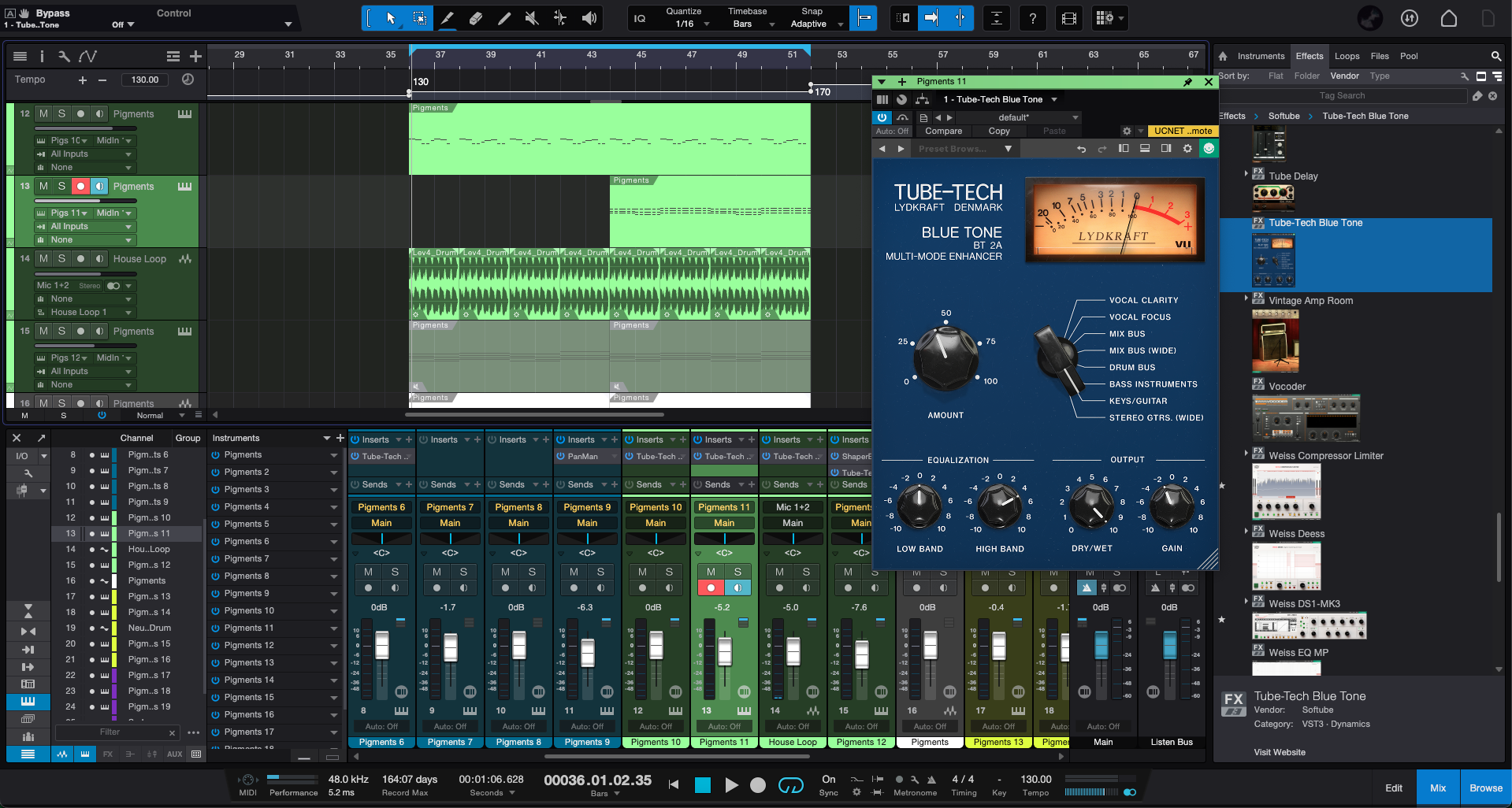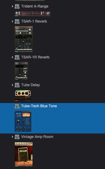 Softube Tube-Tech Blue Tone을 설치한 후, DAW를 실행하면, 다음과 같이 정상적으로 플러그인이 설치된 걸 확인할 수 있다. Softube의 플러그인들은 VST3, AU, AAX 등을 지원해 대다수의 DAW에서 정상적으로 실행할 수 있다. 필자의 경우 VST3을 선호하기 때문에, 다른 것들은 전부 숨김 처리하고 사용하고 있다.