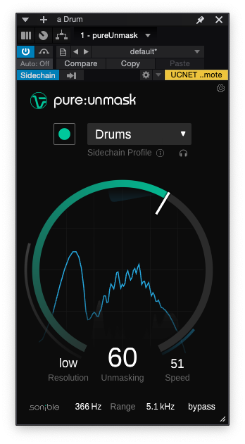 pure:unmask의 가장 큰 장점이라고 하면 손쉽게 사용할 수 있다는 점이다. 노브 하나만 돌리고, 귀로 체크하면서 정도를 적절히 잡아주면 설정이 끝난다. 다이나믹 EQ나 EQ, 사이드체인 등을 동원하면서 제어하던 기존의 방식과 비교하면 굉장히 쉽고 간편하다. 물론 사이드체인을 적용하는 방법은 DAW에 따라 다르기 때문에 어렵게 느껴질 수도 있다. 그러나 전자 음악을 조금 하는 사람이라면 사이드체인의 활용도는 무궁무진하기 때문에 어느 정도 알고 있다고 필자는 생각한다.