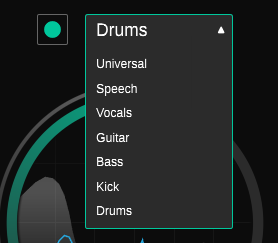 이제 세부 기능들을 하나씩 살펴보고자 한다. pure:unmask를 제대로 사용하기 위해서는 첫번째로 프로필을 설정해줘야 한다. 마스킹이 일어나는, 즉 사이드체인 소스가 어떤 건지에 따라 프로필을 다르게 설정하는 게 좋다. 왜냐하면 각각의 프로필마다 감지 알고리즘이 다르기 때문이다. 굵직굵직한 것들을 다 들어 있지만, 만일 해당하는 프로필이 없을 경우, Universal을 선택하자. 프로필 선택 창 바로 왼쪽에 있는 초록 원은 위에서 이야기했던 레코딩 버튼이다.