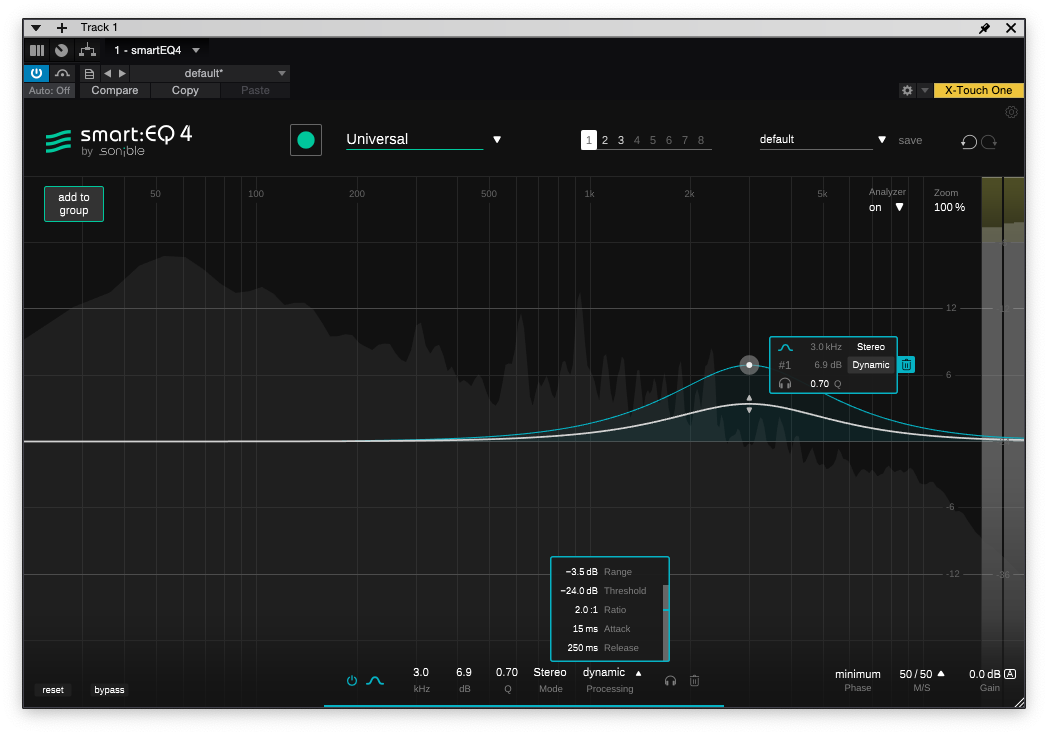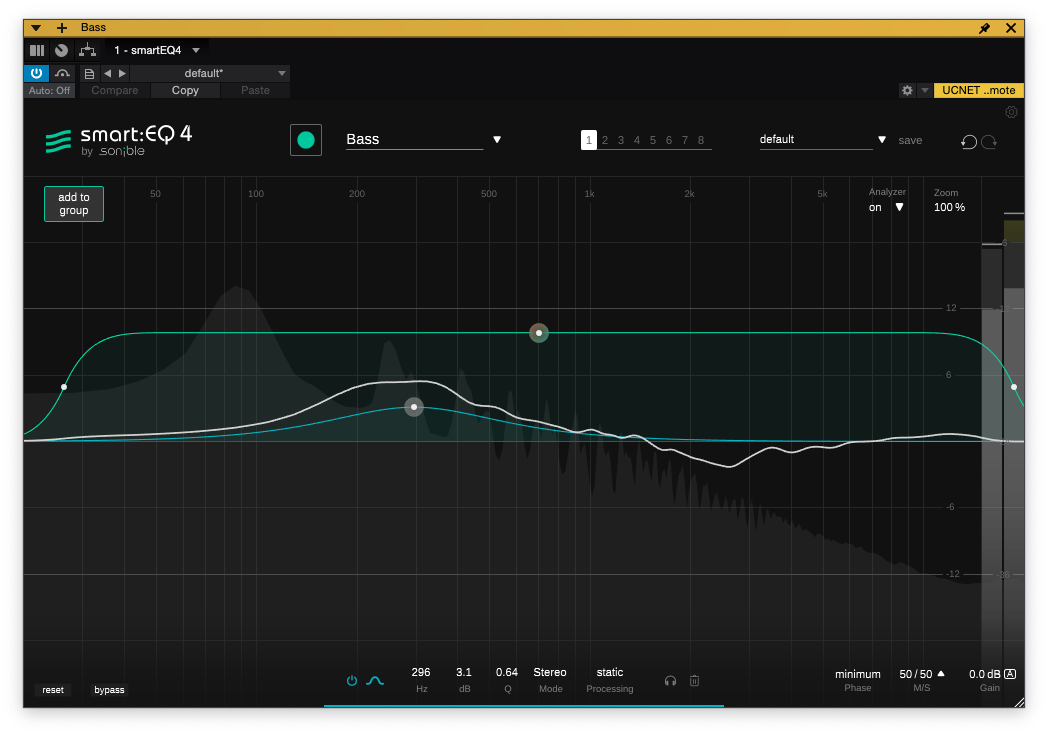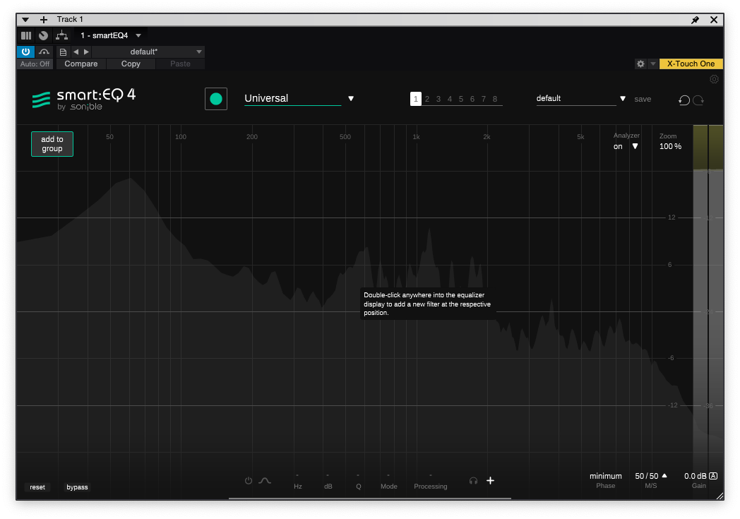 마지막으로 smart:EQ 4의 핵심 기능 중 하나인 smart:filter를 그룹 단에서 일괄적으로 걸어서 분석할 수도 있다. 또한 그룹 쪽에서 간단한 EQ 밴드 편집도 가능해 보인다.