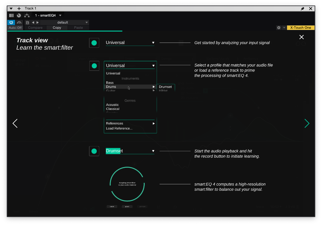 Take the Tour를 누르게 된다면 sonible smart:EQ 4에 대한 간단한 설명이 영어로 나온다. 영어를 간단하게 요약하자면 다음과 같다.