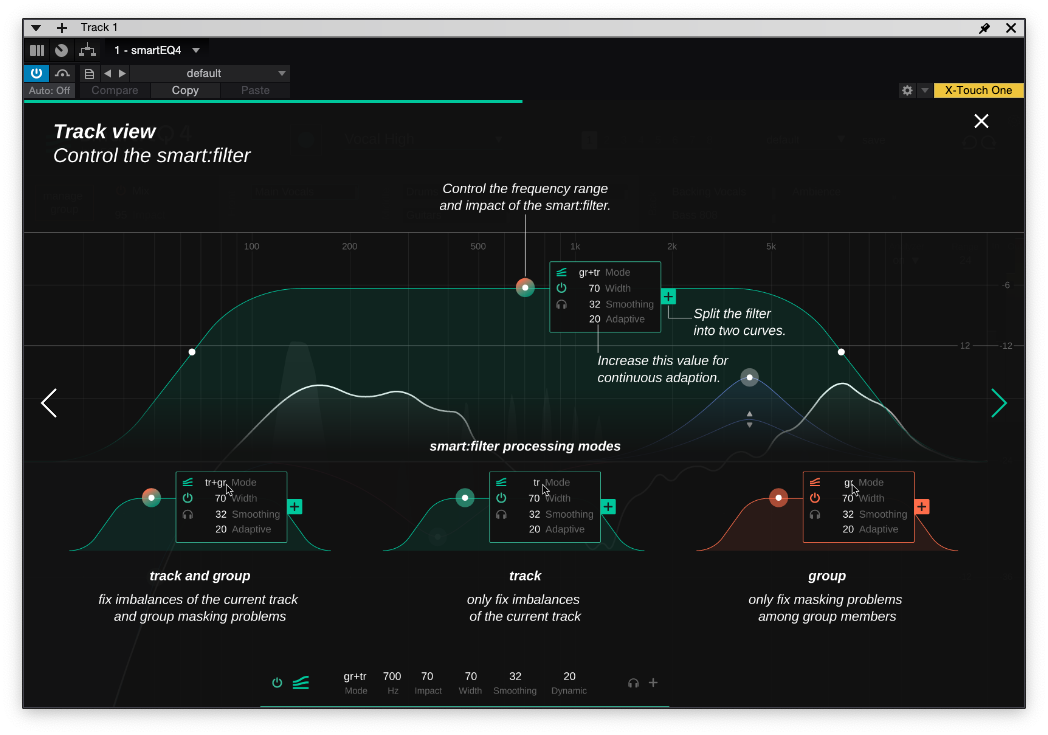 다음으로는 smart:filter를 사용하는 방법에 대해서 설명이 나오는데, 일반적인 EQ와 크게 차이점은 없었다. 다만 그룹 단에서 마스킹이 일어날 경우, 그룹 쪽에서 마스킹을 해결하는 기능이 들어간 건 인상적이다.