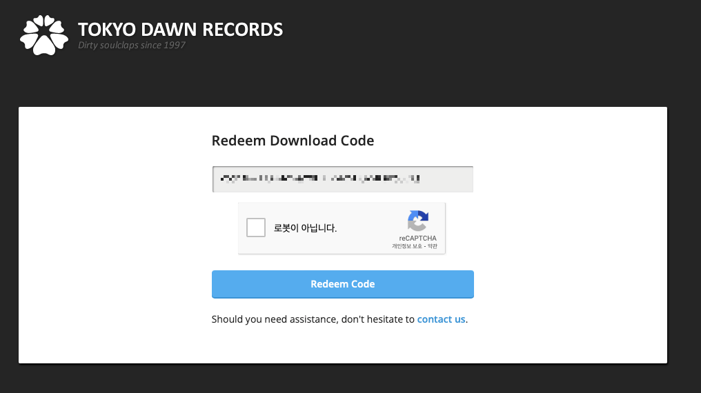 이제 시리얼 등록을 할 차례다. 방금 전 PluginBoutique에서 표시된 시리얼 번호를 복사해서 TDR 다운로드 코드 입력 페이지에 입력하자. 시리얼 입력 및 리캡차를 마무리한 후 'Redeem Code' 입력을 누르자.