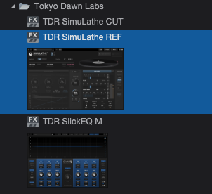 TDR SimuLathe REF를 설치한 후, DAW를 실행하면, 다음과 같이 정상적으로 플러그인이 설치된 걸 확인할 수 있다. TDR SimuLathe REF는 VST3, AU, AAX 등을 지원해 대다수의 DAW에서 정상적으로 실행할 수 있다. 필자의 경우 VST3을 선호하기 때문에, 다른 것들은 전부 숨김 처리하고 사용하고 있다.