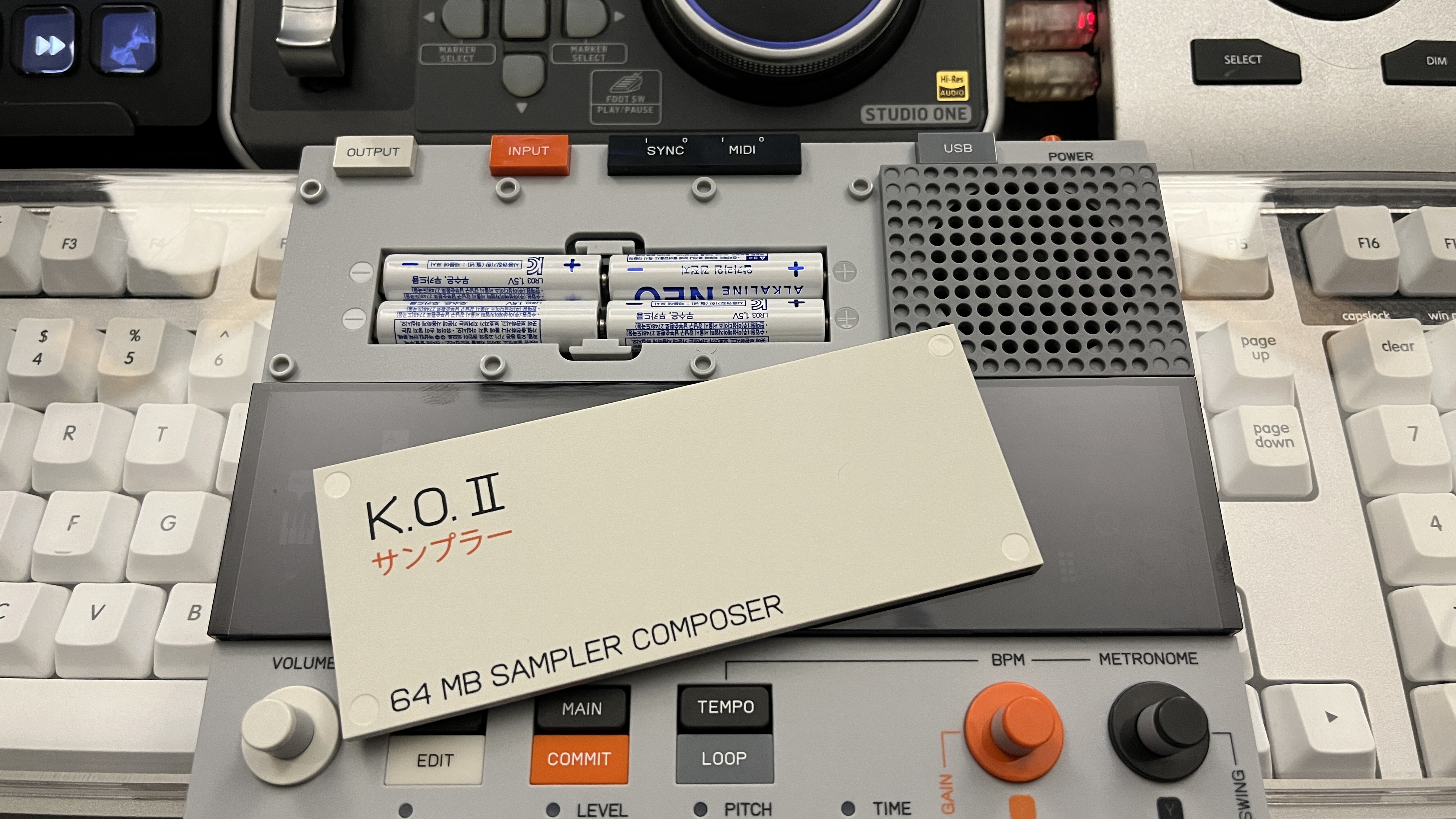 EP-133은 USB 전원으로도 작동하지만 언제 어디서든 사용하려면 배터리를 넣어줘야 한다. K.O II 라고 적힌 커버를 들어 올리면 배터리 슬롯이 나타난다. 여기에 AAA 배터리 4개를 극성 맞춰서 넣으면 사용할 준비는 끝난다.