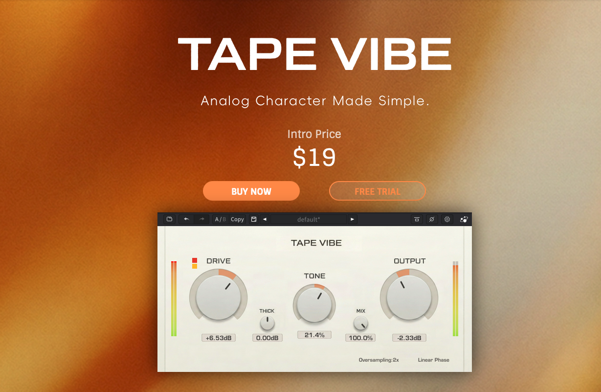 최근 Three Body Technology는 새로운 이펙터를 하나 출시했는데, 바로 Tape 스타일 에뮬레이팅 이펙터 Tape Vibe다. 처음 보았을 때 굉장히 Three Body Technology스럽지 않은 심플한 디자인 때문에 한번 써보고 싶다는 생각이 들었다. 뭐니 뭐니 해도 가격이 가장 마음에 들었다. 19달러다! 이 정도면 그냥 가볍게 찍먹 해서 써볼 수 있는 가격대다. 살까 말까 고민을 하고 있던 차에 마침 PluginBoutique의 도움으로 Tape Vibe를 장기간 써볼 수 있는 기회를 얻을 수 있었다.