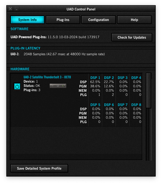 여담이지만 CPU Native로 바뀌면서 기존의 DSP 용량과 관계없이 이펙터들을 사용할 수 있다는 점은 큰 장점이다. 예를 들면, SSL 4000 Series Console Bundle에 포함되어 있는 UADx SSL 4000E Channel Strip은 DSP로 사용할 경우 코어당 62.5%라는 큰 점유율을 차지했다. 필자가 사용하는 UAD-2 코어가 8코어 제품인데, UADx SSL 4000E Channel Strip을 8개 걸면 점유율이 낮은 이펙터를 쓰지 않는 한 다른 UAD-2 이펙터를 사용하지 못했었다. CPU Native는 이런 DSP 코어의 개수와 관계 없이 CPU 성능만 허용된다면 무제한적으로 이펙터를 걸어 쓸 수 있다는 점이 마음에 든다.