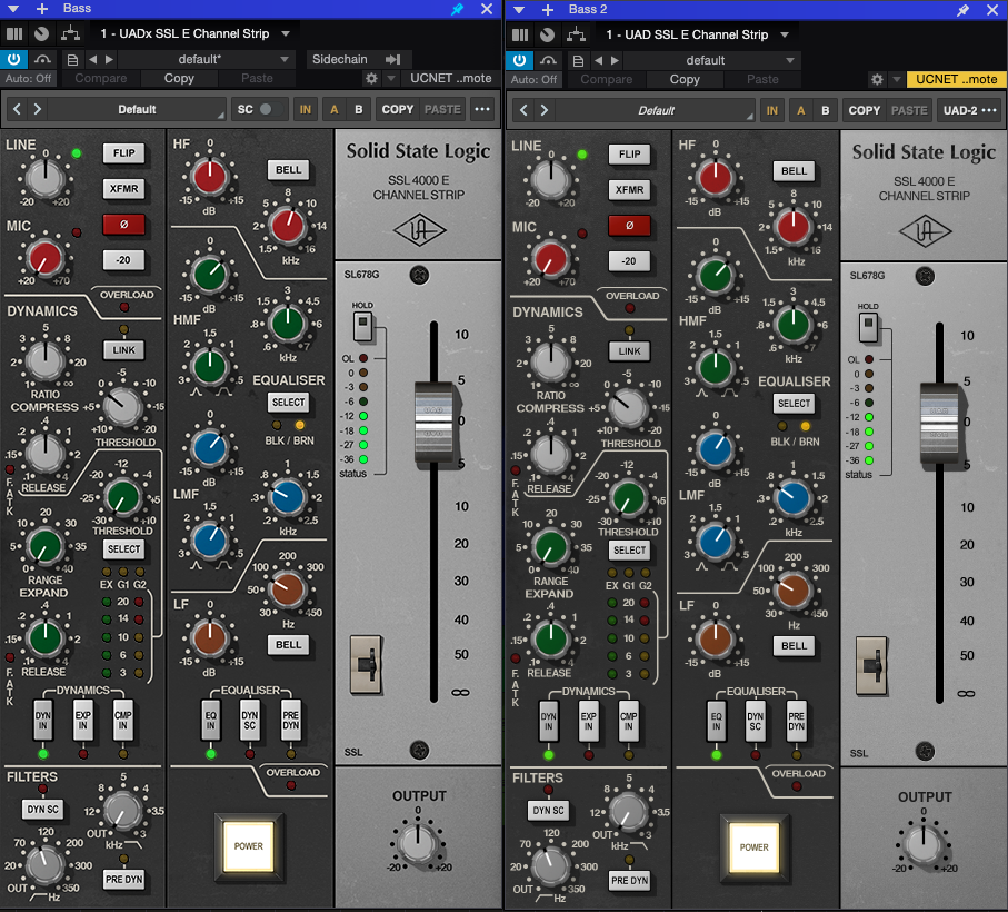 SSL 4000 Series Console Bundle은 이미 Universal Audio 내부에서도 몇 개의 버전이 있다. 최초로 개발되었던 Legacy DSP와 지금까지 사용되던 UAD-2 DSP, 그리고 지금 출시된 UADx Native까지 크게 3가지로 분류된다. 이번에 출시된 UADx SSL 4000 Series Console Bundle은 UAD-2 DSP 버전에서 그렇게까지 크게 바뀌지 않았다는 느낌이다. 이전에 다뤘던 Ampex ATR-102는 Native 버전에서 크게 기능들이 변경되었는데 다행히도 SSL 4000 Series Console Bundle의 경우 크게 바뀐 부분이 없는 듯하다. 디자인 및 사운드 컬러도 거의 같게 느껴졌고, 조작법도 크게 문제가 없었다. 다만 작은 차이가 하나 있었는데 아무래도 UADx의 이펙터가 최신 규격을 사용하고 있기에 외부 트랙의 사이드체인을 사용할 때 조금 더 편리하게 사용할 수 있었다.