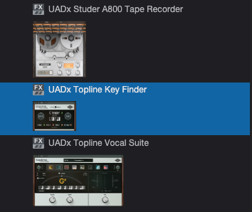 UADx Topline Vocal Suite를 설치한 후, DAW를 실행하면, 다음과 같이 정상적으로 플러그인이 설치된 걸 확인할 수 있다. UAD Topline Vocal Suite는 VST3, AU, AAX 등을 지원해 대다수의 DAW에서 정상적으로 실행할 수 있다. 필자의 경우 VST3을 선호하기 때문에, 다른 것들은 전부 숨김 처리하고 사용하고 있다. 2개가 같이 설치된 걸 확인할 수 있는데, 2개의 이펙터가 1개의 번들로 구성이 되어 있기 때문이다. 물론 Key Finder는 설치하지 않아도 무방하다.