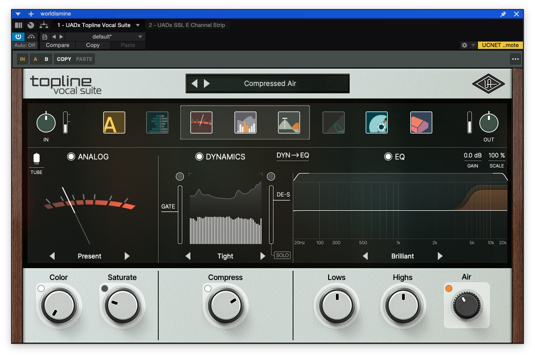 각설하고, UAD에서 새롭게 내놓은 플러그인은 Topline Vocal Suite다. 이전엔 없던 새로운 제품군으로 보컬 작업에 특화되어 있다. 간단한 작업일 경우 Topline Vocal Suite 하나로 보컬 믹스를 끝낼 수 있다고 할 수도 있다. 일종의 보컬 전용 채널 스트립 느낌이지만 리버브나 딜레이, 모듈레이션, 그리고 음정 보정 기능이 들어가 있어 보컬 작업에 더욱 특화되어 있다고 한다. Topline Vocal Suite의 정식 출시는 미국 시간 기준으로 2024년 10월 8일 판매를 시작하며, 가격은 399달러지만 출시 기념으로 꽤 파격적인 세일을 하고 있어 199달러에 구매할 수 있다.