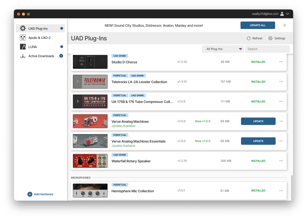 Universal Audio의 Native 플러그인들은 "UA Connect"라 불리는 별도의 프로그램에서 관리된다. UA Connect에서는 iLok과 연동되어 자동으로 라이센스 등록 및 플러그인 설치도 할 수 있기에 반드시 설치하는 걸 권장한다. UA Connect를 실행한 다음, 오늘의 주인공, Verve Analog Machines를 ILok 계정에 인증하고, 설치한다. 플러그인 인증에는 iLok 계정이 필요하므로 미리 만들어 놓는 걸 추천한다. 필자의 계정은 현재 베타 테스트를 진행 중이므로 일반적인 UA Connect 화면과 다를 수 있다.