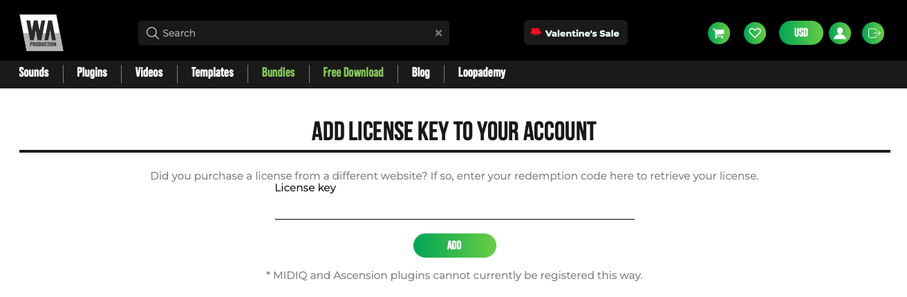 이제 W.A. Production 홈페이지에 들어가서 시리얼 키 등록을 진행하자. PluginBoutique에서 발급받은 키를 W.A. Production에 회원 가입을 한 후, 시리얼 키를 입력하자.