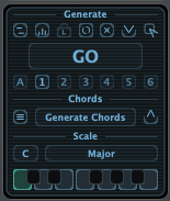 바로 하단에는 미디 트랙을 만들어주는 제너레이터 모듈이 있다. 좌측 상단에 다양한 기능들이 작은 아이콘으로 표시되고 있는데 마우스 커서를 가까히 가져다 대면 어떤 기능들이 있는지 한눈에 확인할 수 있다. 좌측부터 "현재 멜로디 기반으로 다양한 바리에이션 만들기", "현재 노트들의 벨로시티 랜덤화", "모든 트랙들을 링크 컨트롤하기", "컨트롤 리셋(링크되었다면 그 트랙도 포함)", 모든 트랙 노트 지우기", "미디 파일로 저장하기", "가지고 있는 미디 파일 드래그 드랍하기"다. 멜로디 및 코드, 베이스를 만들어낼 때 꽤 요긴하게 사용할 수 있는 기능들이다. 특히 벨로시티 랜덤화는 멜로디나 코드 쪽에 사용하면 좋을 듯하다.
