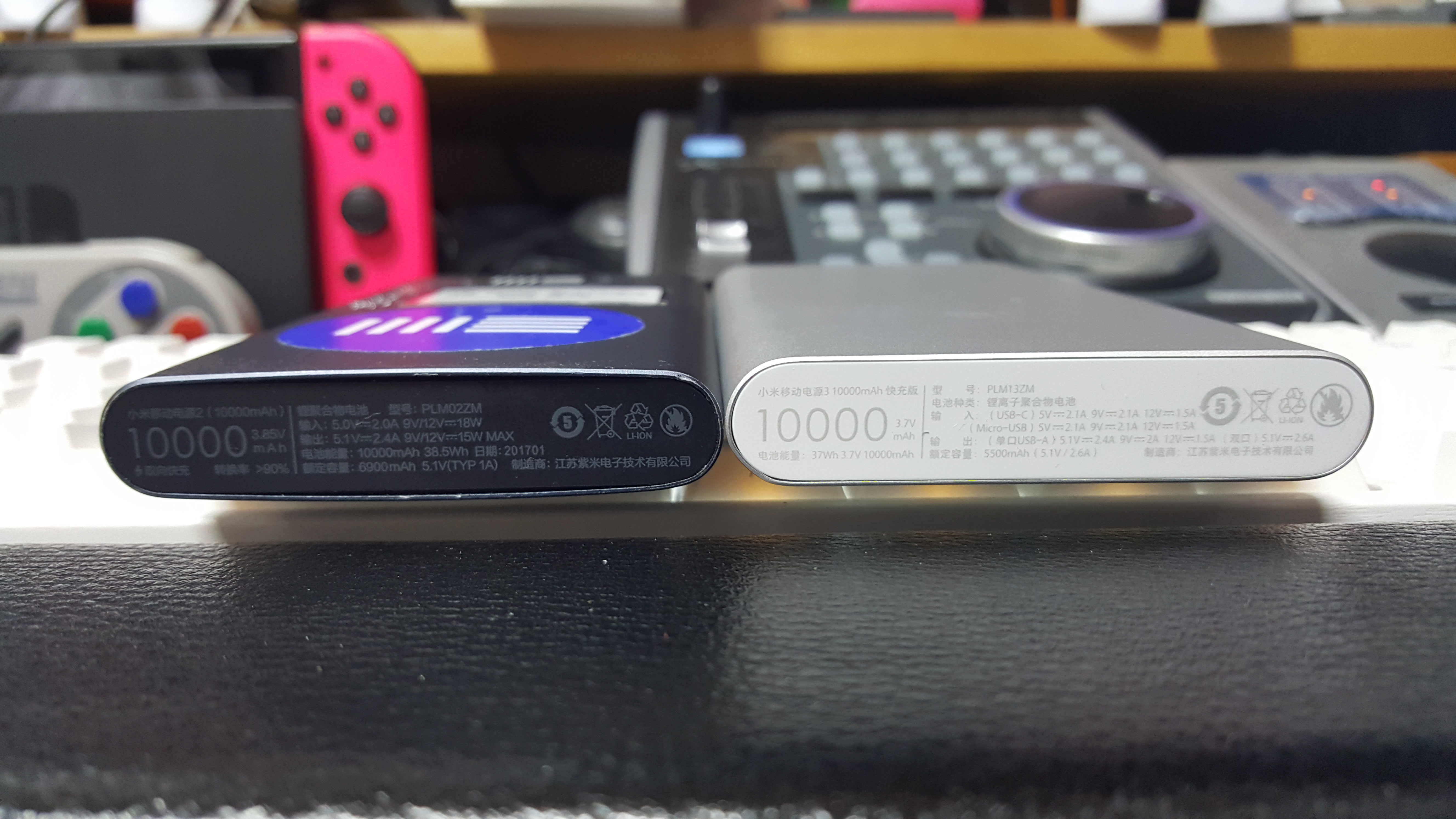 PowerBank 10000 3세대와 기존에 구매한 후 필자가 사용하고 있는 PowerBank 10000 2세대와 비교해보았다. 가로 사이즈는 2세대와 동일한데 3세대는 왠지 위로 늘어났다. 아마도 3세대에 들어오면서 USB-PD 고속 충전을 지원하는 탓에 기존 폼팩터에 기능들을 다 집어넣지 못해서 내린 부득이한 결정이 아닐까 하는 생각이 든다.