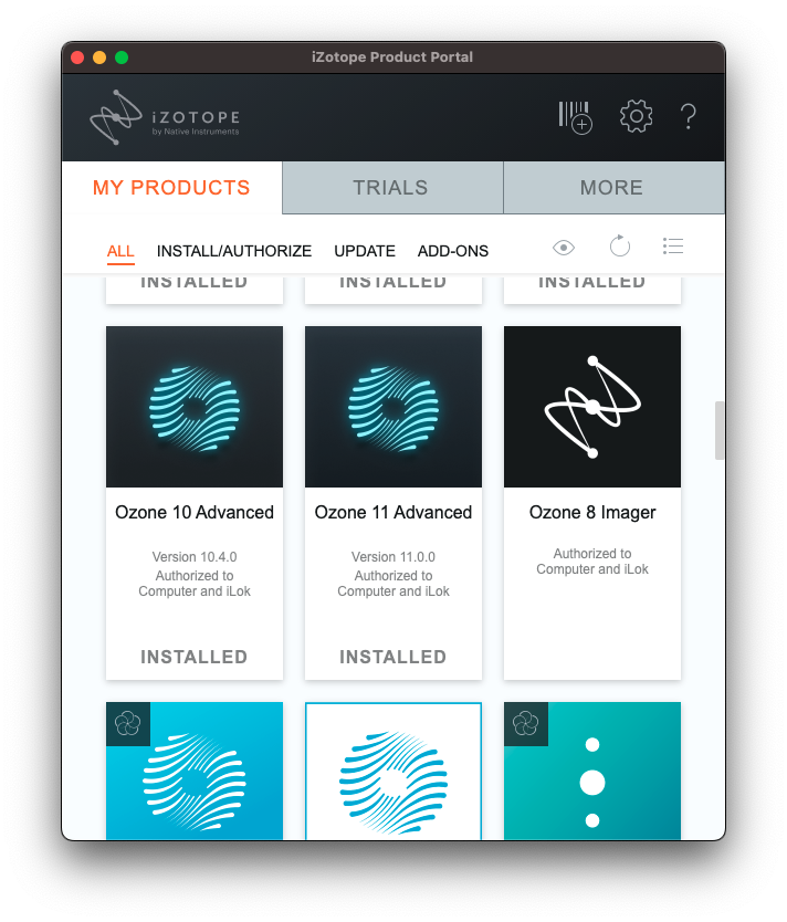 정상적으로 제품 등록 및 설치가 끝났다면 My Product에 Ozone 11이 추가되어 있는 걸 확인할 수 있다.