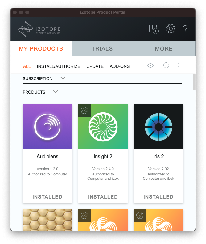 iZotope의 플러그인들은 "iZotope Product Portal"이라는 전용 프로그램에서 라이센스 관리 및 설치가 이루어진다. 따로 설치 및 인증을 할 수도 있지만 추후 iZotope의 플러그인을 구매할 생각이라면 전용 프로그램을 이용해 관리하는 게 더욱 편리하다. iZotope Product Portal 설치 파일은 iZotope 공식 홈페이지에서 받을 수 있다.