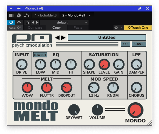 MondoMelt는 과거의 테이프 머신의 느낌을 손쉽게 구현할 수 있는 새츄레이션 이펙터다. 출시된 지 얼마 안 된 따끈따끈한 최신 이펙터이기도 하다. MondoMelt를 사용하게 된다면 테이프 머신의 특징 중 하나인 피치의 떨림, Flutter, Dropdut 등 빈티지 테이프 머신에서 들을 수 있는 사운드들을 손쉽게 자신의 음악에 적용할 수 있다. 또한 위에서 설명한 EchoMelt의 기술이 일부 적용되어 있어 간단하지만 확실한 효과를 얻을 수 있는 새츄레이션이다.