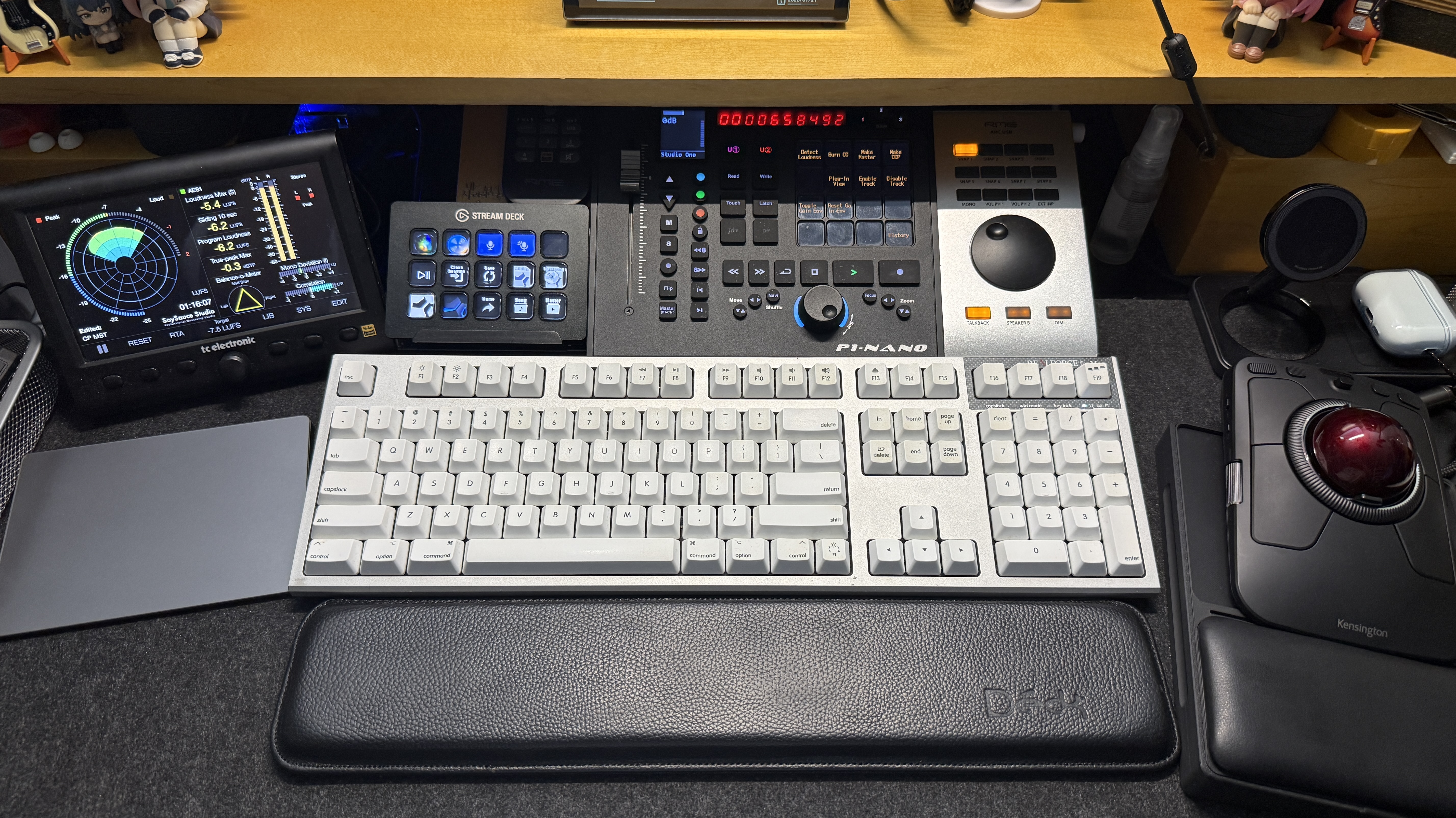 아무튼 새로운 트랙볼 마우스를 들였으니 데스크 셋업을 다시 해야겠지. 2026년 버전 필자의 새로운 데스크 셋업이다. 처음 Kensington Expert Mouse를 들였을 때와는 달리 많은 변화들이 있었고 장비도 바뀌었다. 좌/트랙패드, 우/트랙볼 마우스 조합으로 사용하고 있는데 필요에 따라 오른손의 부담을 확 줄일 수 있다는 점이 좋다. 옛날에는 반대였지만 어쨌건 트랙볼 마우스 하나만큼은 그대로 유지되고 있다. 다만 그냥 사용하진 않고 각을 주는 작은 선반을 하나 구매해서 거기에 Kensington Expert Mouse TB800EQ를 올려놓고 사용 중이다. 필자가 자주 쓰는 장비들이 버튼들이 많은데, 비슷한 사이즈의 트랙볼 마우스가 바로 옆에 붙어 있으니 처음 보는 사람이라면 우주선 계기판 같은 느낌이 들 수도 있겠다. 사족이지만 저 버튼들 대부분 다 쓴다.